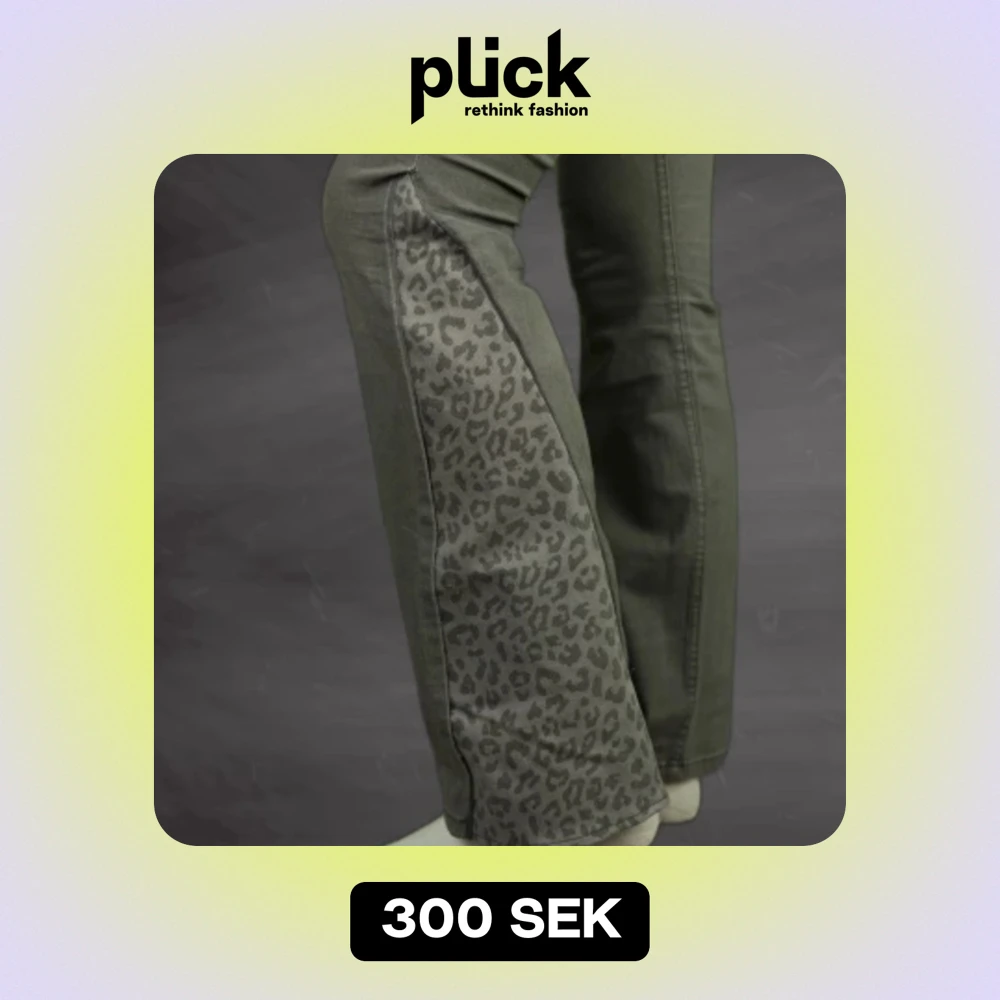 Lågmidjade bootcut jeans med leopard design. Återanvända jeans och sytt för hand. Mått finns bland bilderna. Hör av er för frågor. 💗 Rewild Denim UF