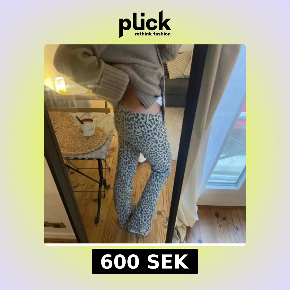 Säljer ett par snygga bootcut jeans med leopardmönster. Midjemått: 37 innerbenslängd:83