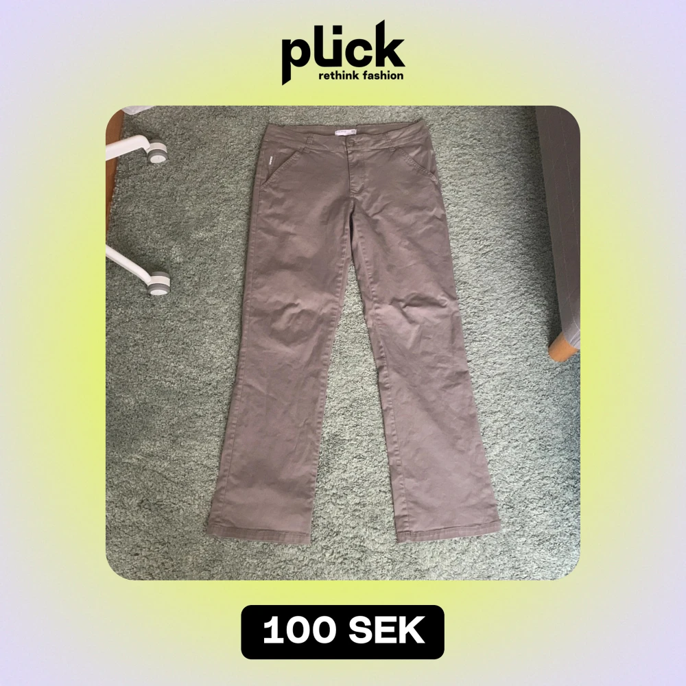 Lågmidjade gråa/Khaki byxor. Är stora i storlek så skulle säga 38.