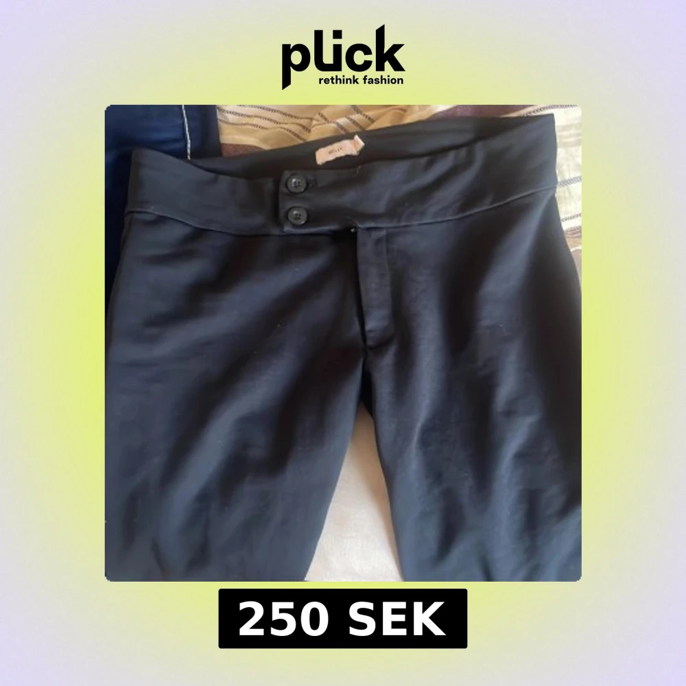 Snygga svarta bootcut-byxor från Nelly i storlek S. Byxorna har hög midja, två knappar framtill och är tillverkade i ett mjukt, stretchigt material som sitter skönt. Perfekt för dig som gillar en klassisk och stilren look. Nypris 350