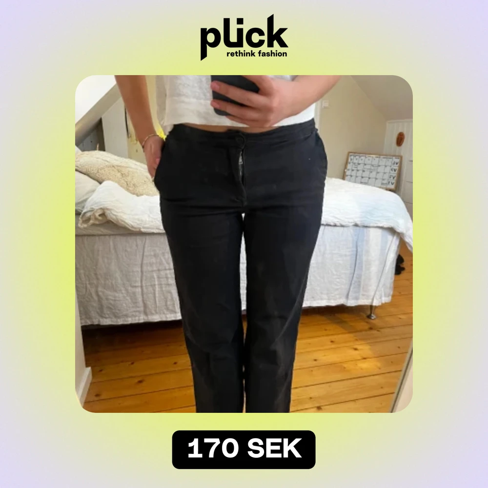 Lågmidjade liknande kostymbyxor från Brandy Melville! Det är upsprätade nedtill och passar mig som är 172-173cm Midjemått: 38cm Innerben: 77cm Hör av er om ni har några frågor 🙌🙌