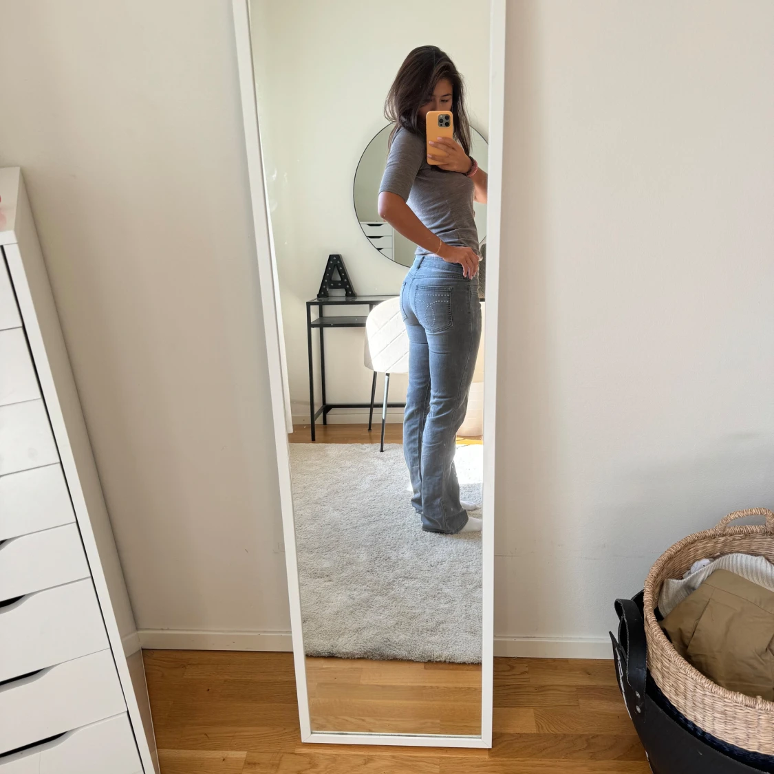dessa jeans från calvin klein är så najs!!! långa på mig som är 164 och passar stl 36! färgen är perfekt ljusgrå!