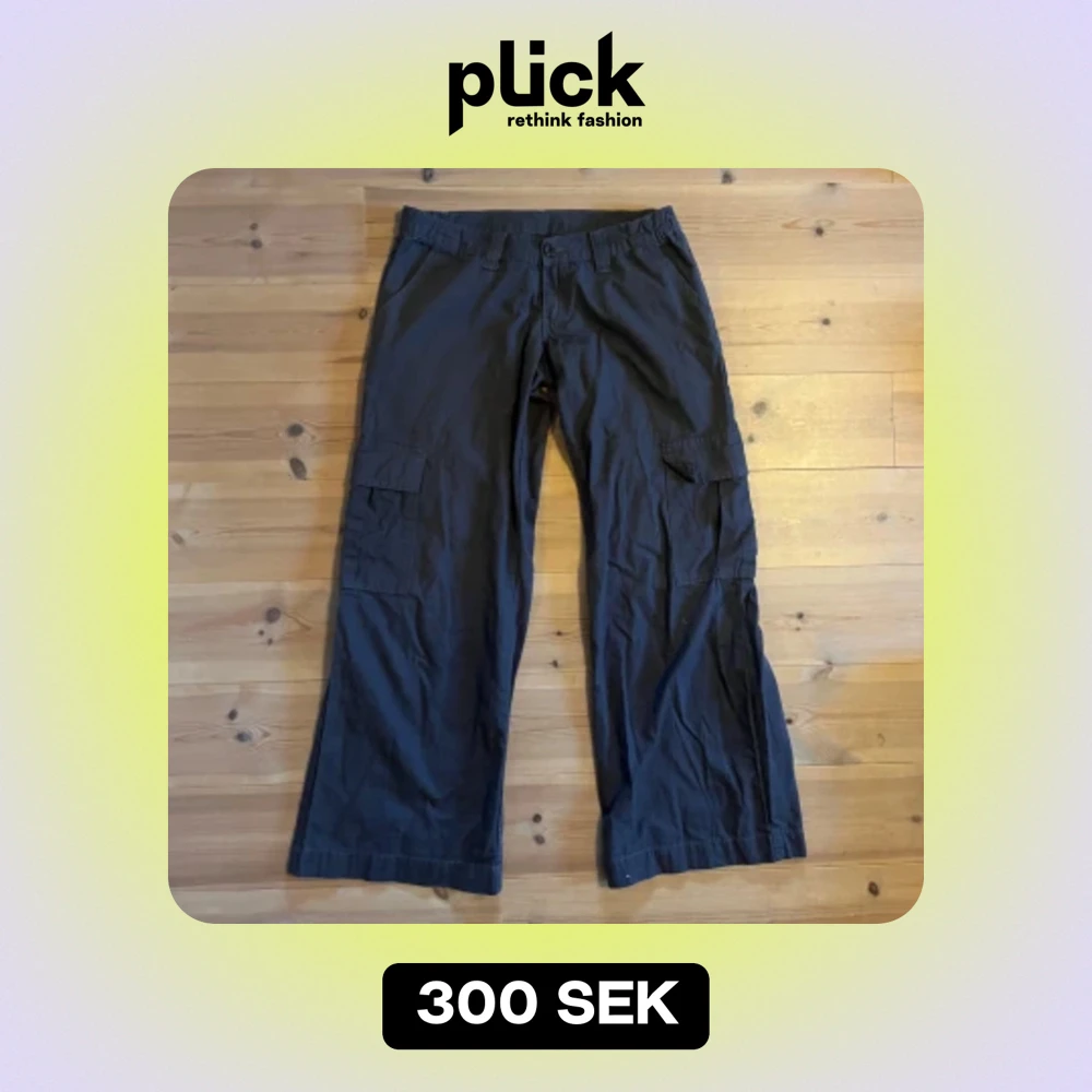 Snygga, lågmidjade, mörkgrå cargobyxor i gott skick och med snygg passform.