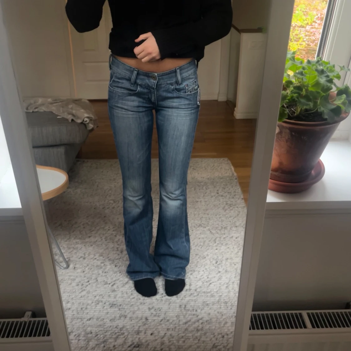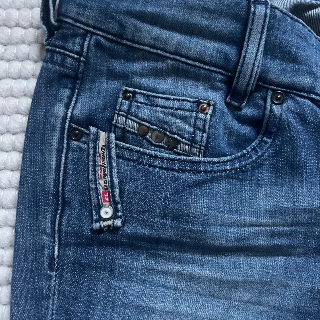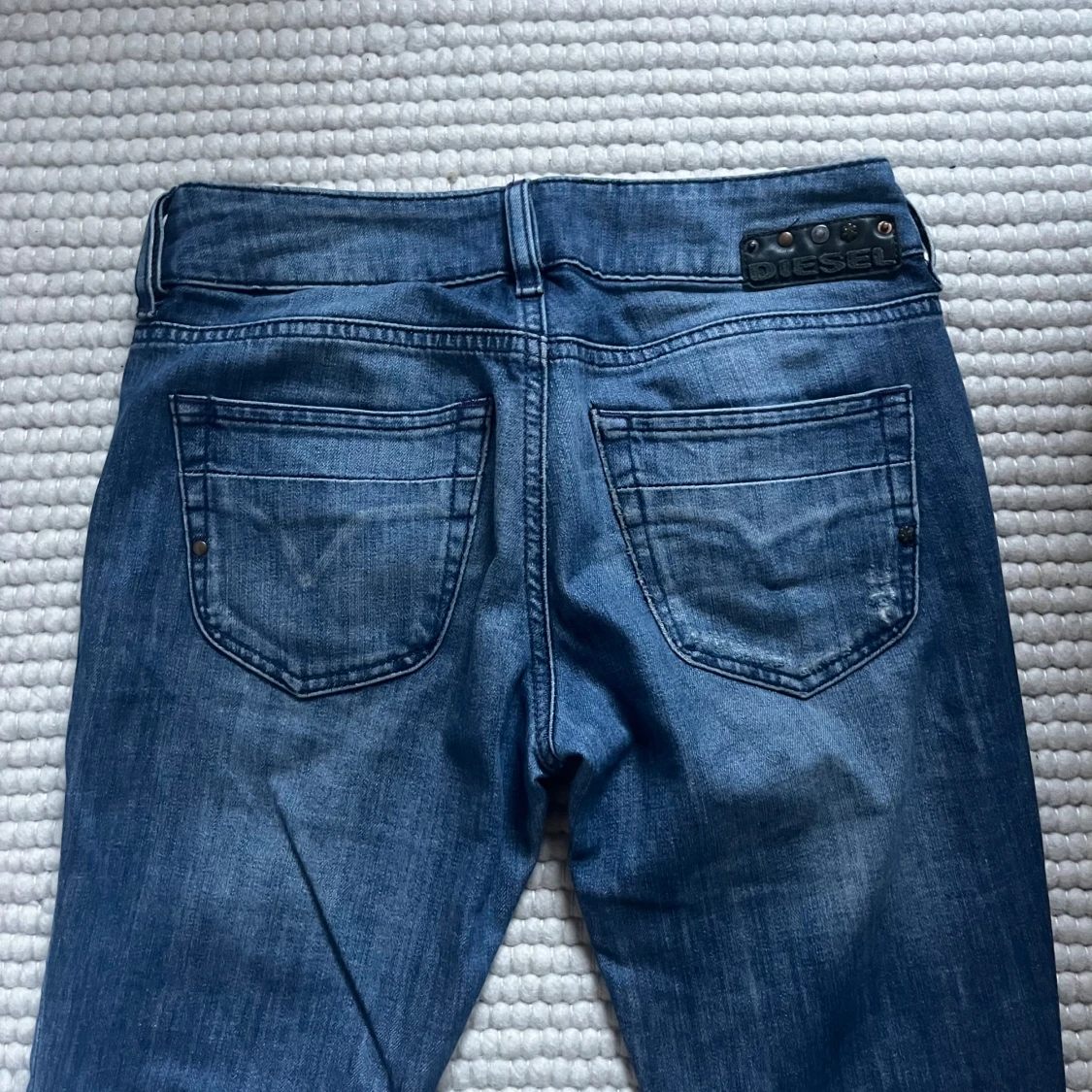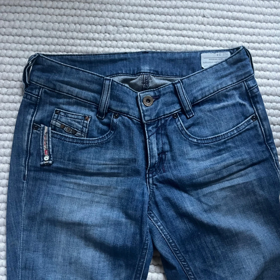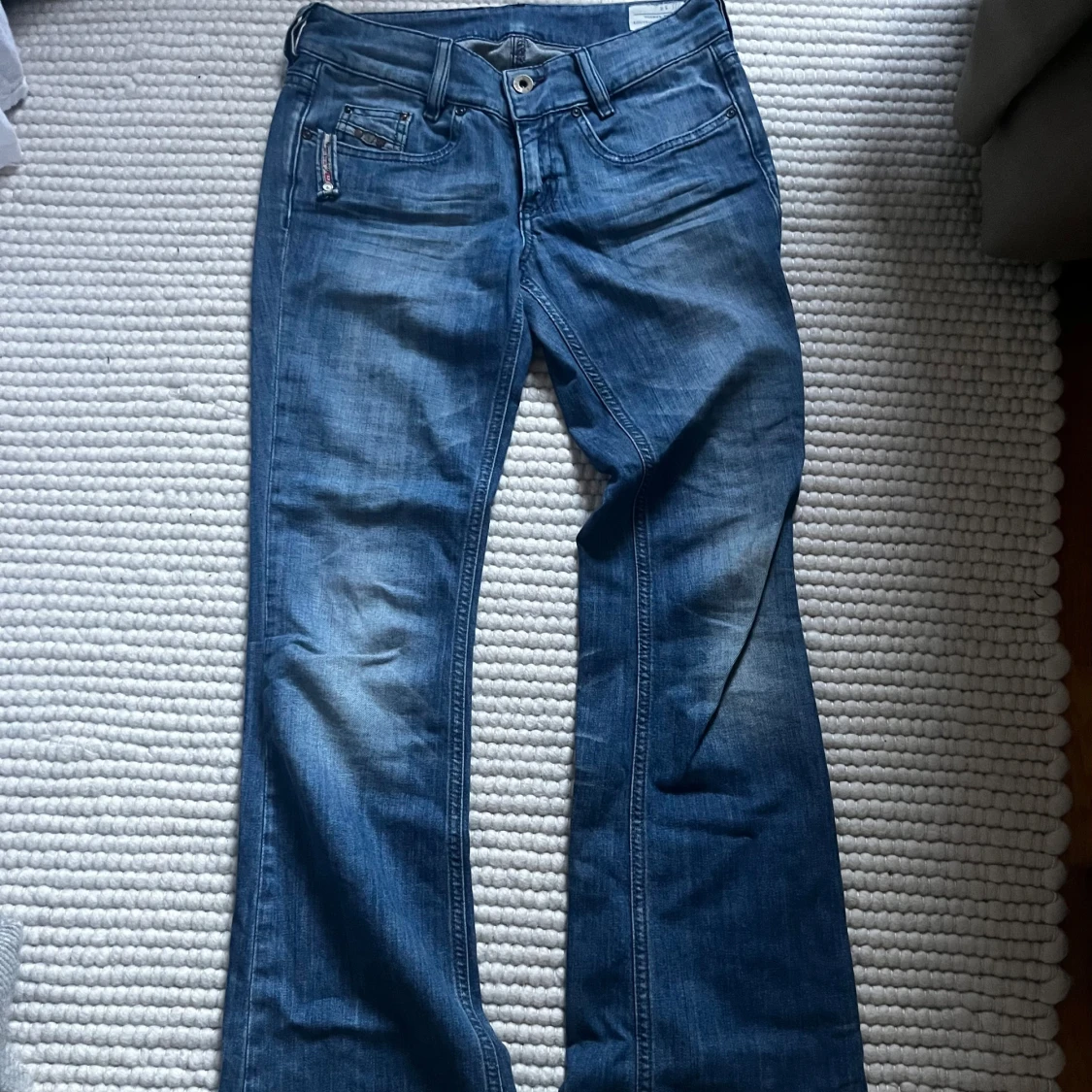 Snygga blå jeans från Diesel med bootcut passform och låg midja. Diesel-logga på bak och framfickan.