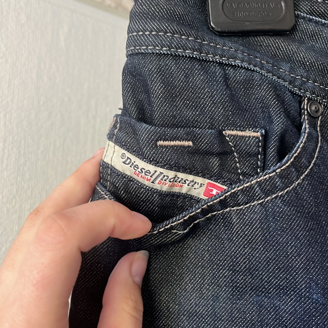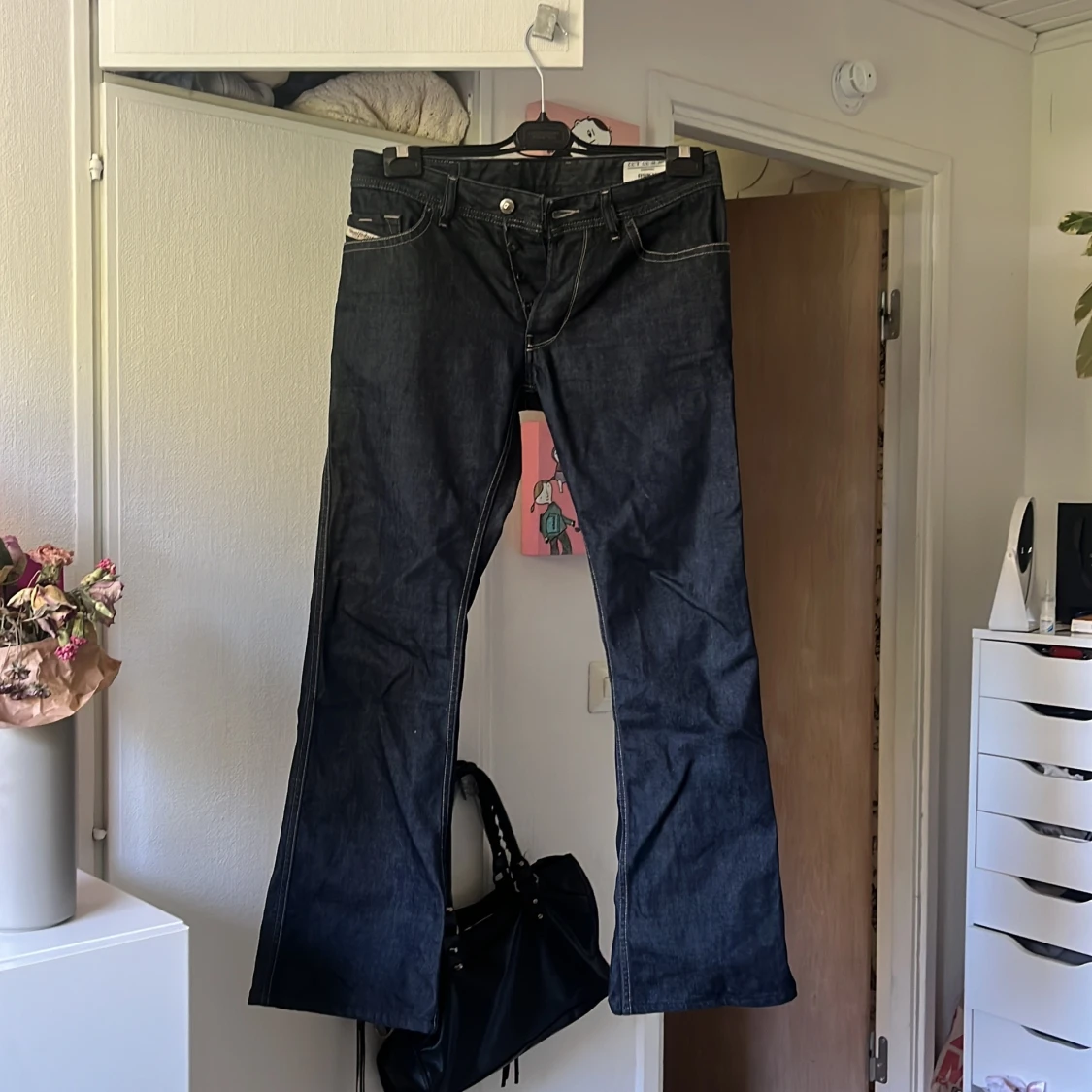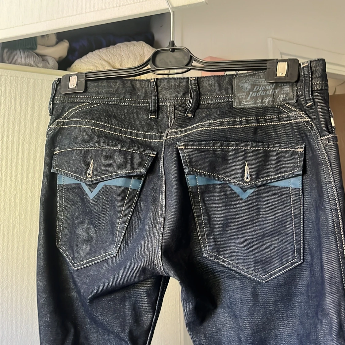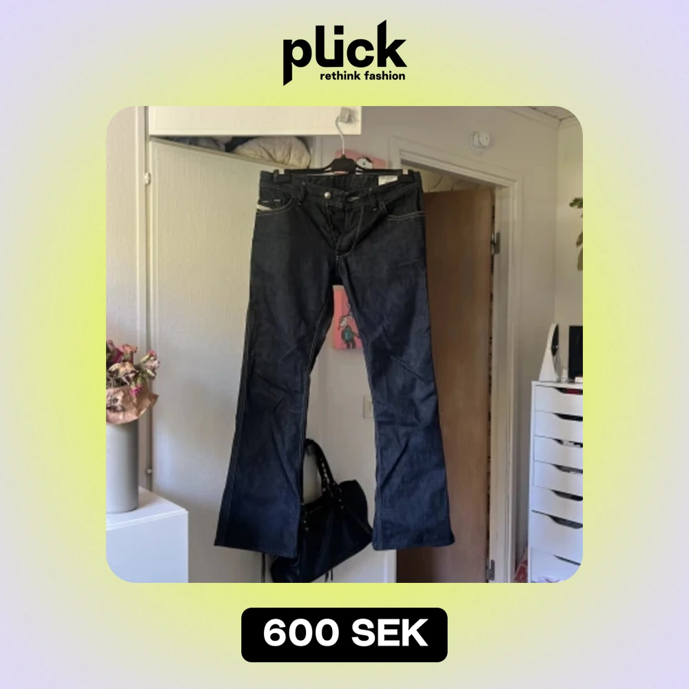 Diesel jeans i jättefin marinblå färg inga skavanker lågmidjade utsvängda sitter som s/m nypris 1999 säljer för 500kr pris kan diskuteras vid snabb affär