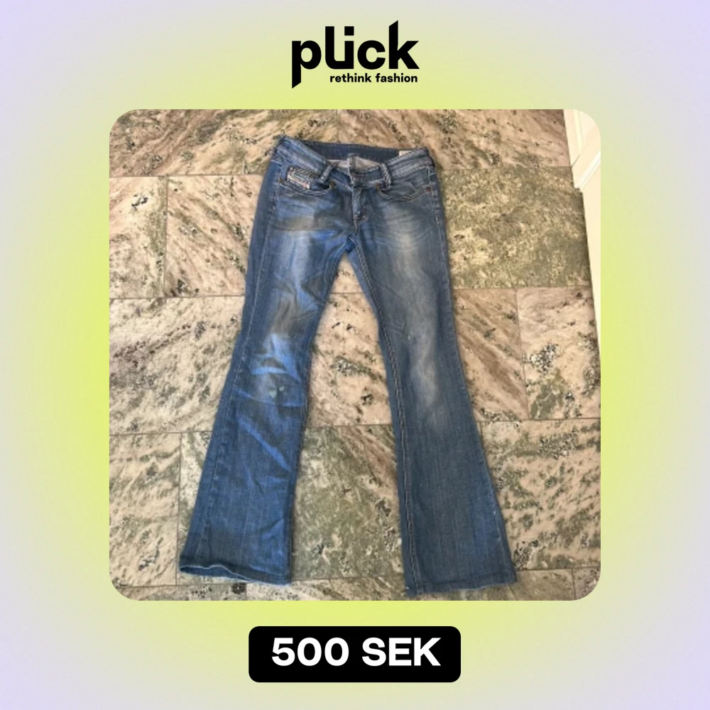 Supersnygga lågmidjade bootcut jeans från diesel som tyvärr är förstora. De är i bra skick förutom målarfärgsfläckar på båda knäna. De går möjligtvis att få bort, har inte försökt så noga då jag inte tycker att det stör. 💞midjemåttet är 74cm💕
