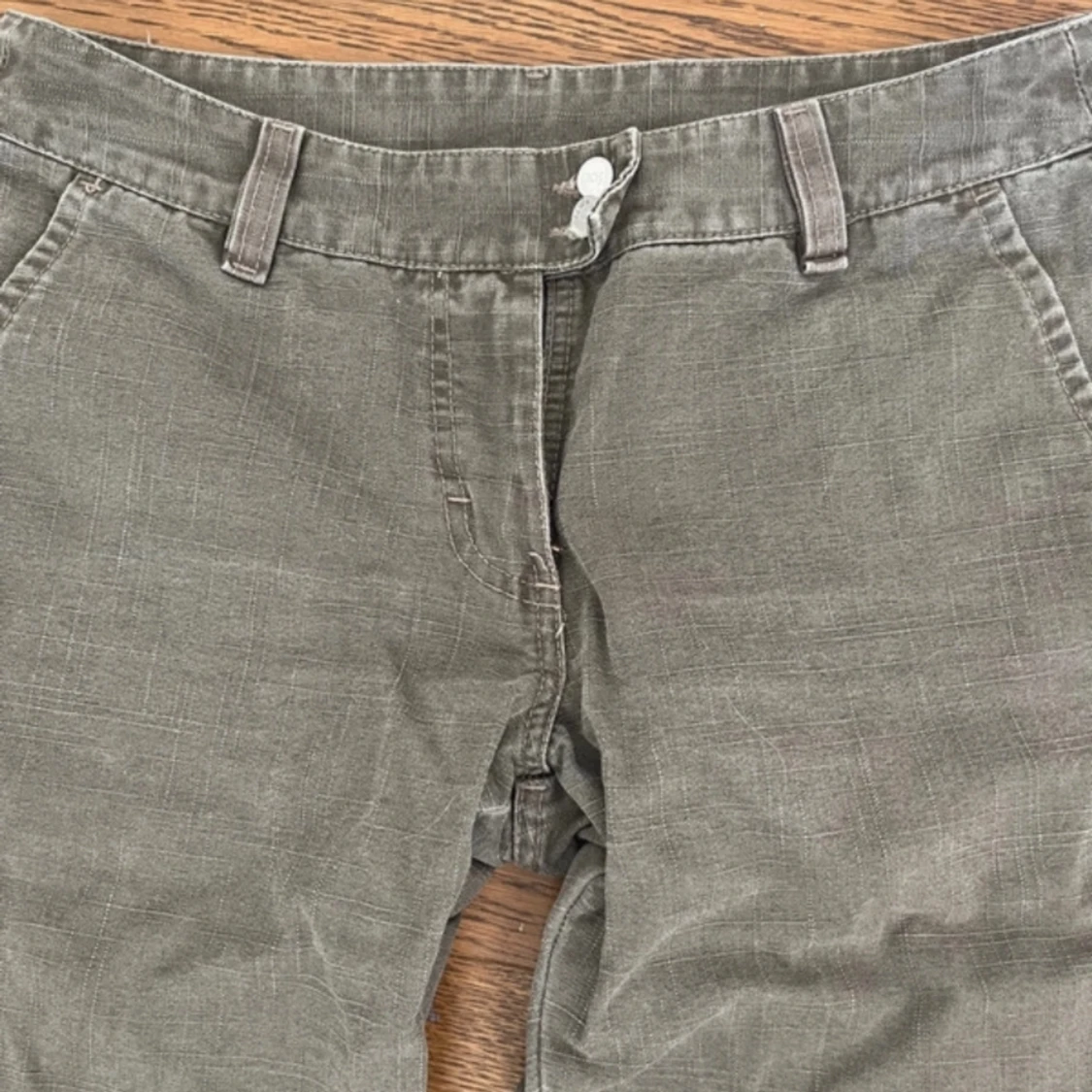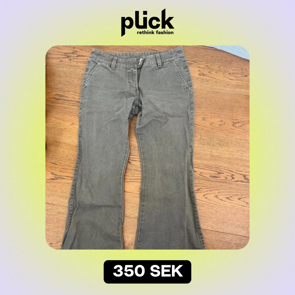 Sååå snygga lågmidjade bootcut militärgröna jeans!! Väldigt snygga bakfickor😍går ner till marken på mig som är 171 och midjemåttet är ca 40 rakt över❤️ kan skicka fler bilder om en vecka! Men as najs verkligeb