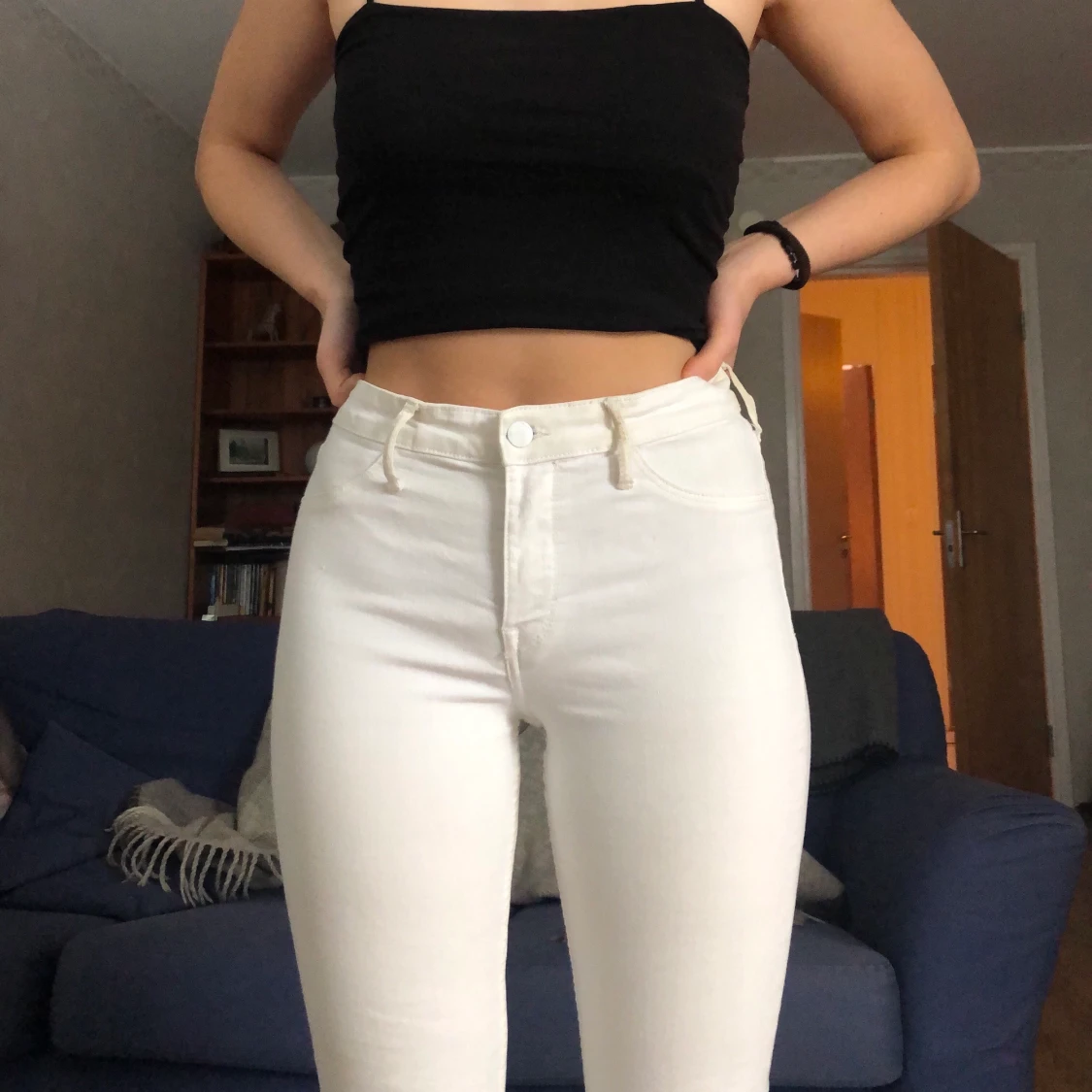 Vita jeans från hm. Inte använda mycket men köpta för länge sedan därav priset. Dessa går ner till anklarna på mig som är 171 cm lång. Skulle säga de är små i storleken så storleken är mer XS än S som de egentligen är. Priset kan diskuteras. Hör av er vid eventuella frågor :) köparen står för frakten