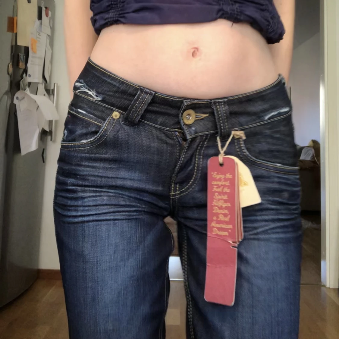 Jätte snygga lowrise jeans med flare😮💨 Köpte på Plick men aldrig använda, bara att knappen är lite lös. Säljer pga inte min storlek. Passar 165-175 skulle jag säga! S/XS i midjan. Möts upp i Stockholm annars står kund för frakt.