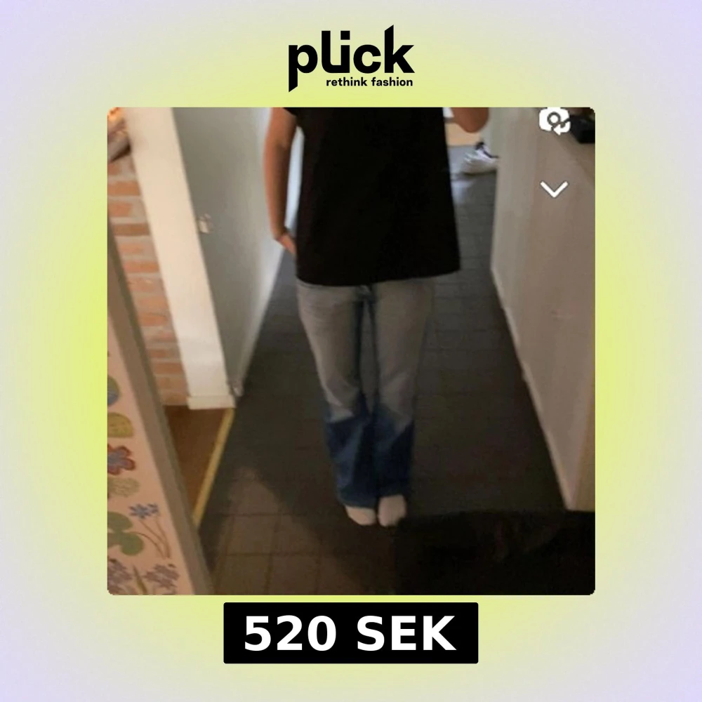 Supersnygga lågmidjade jeans, köpta här på plick men var alldeles för små i midjan på mig:( 2 lånad bild från förra säljaren!!🩷tyvärr för små på mig! (Midjemått: 38cm, innerben:82cm)