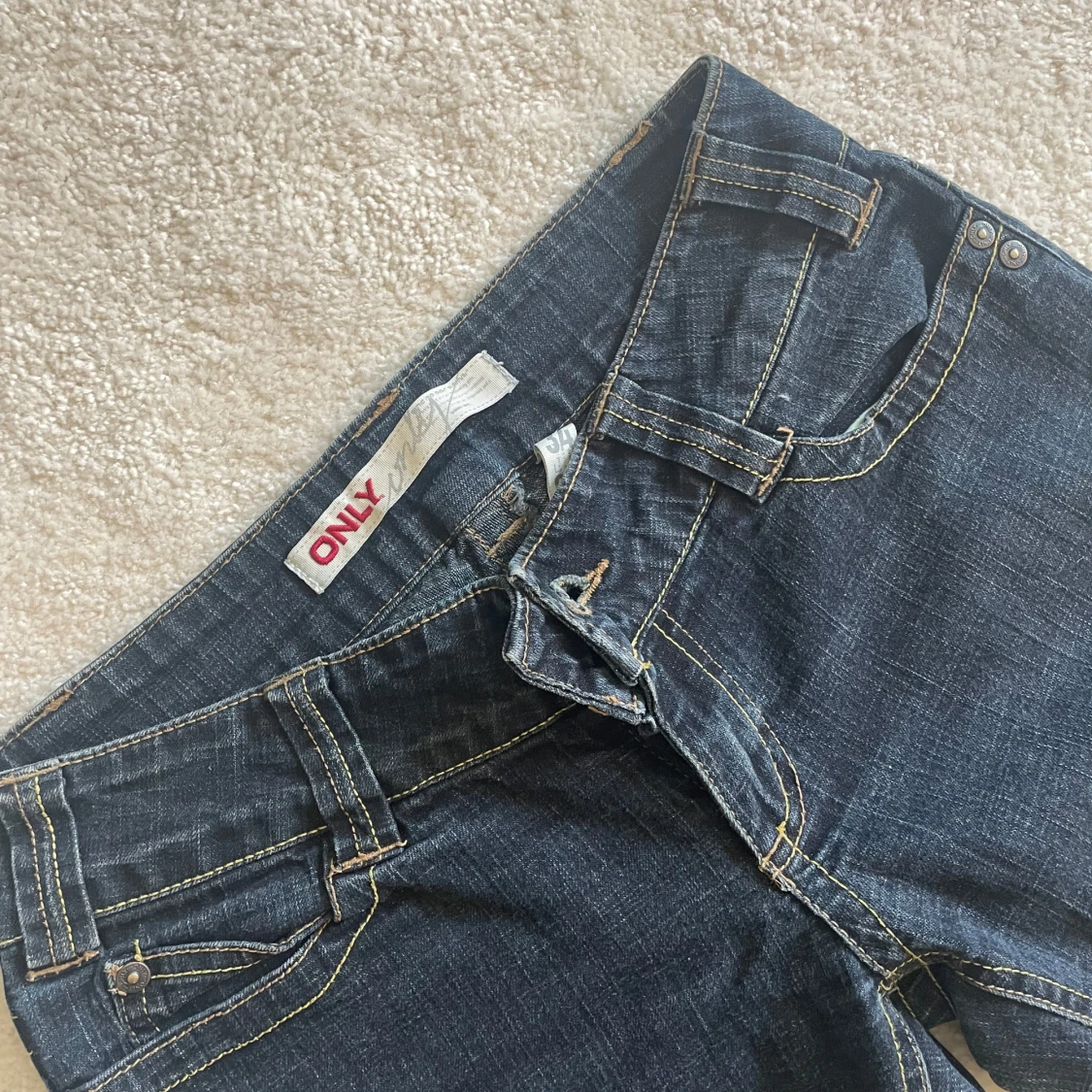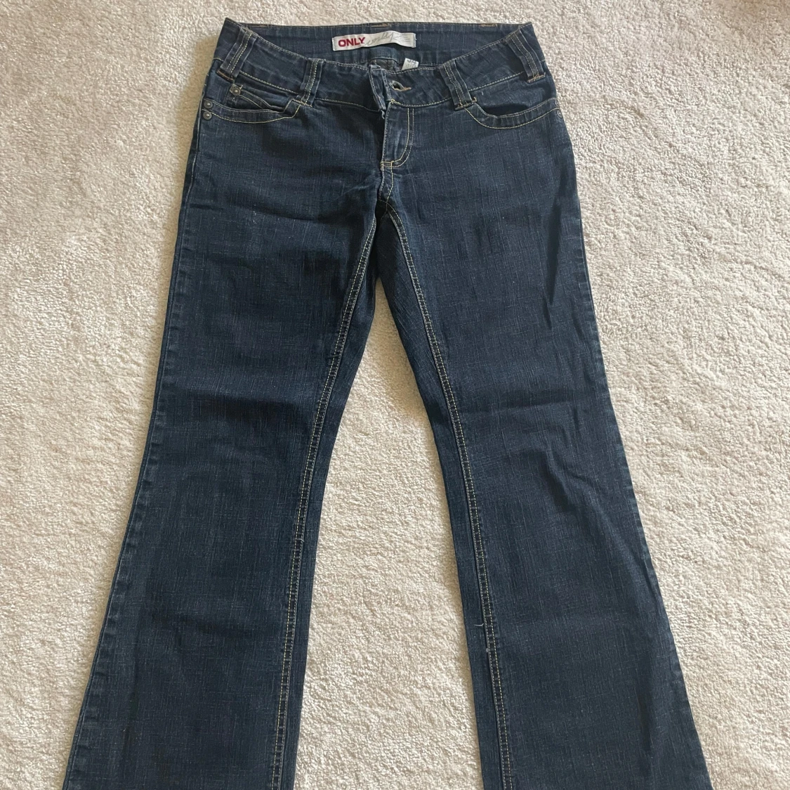 Svin snygga lågmidjade jeans från only, innerbenslängden: 72 cm och midjemåttet: 37 cm💕💕byxorna är upplagda men man ser inte det💕