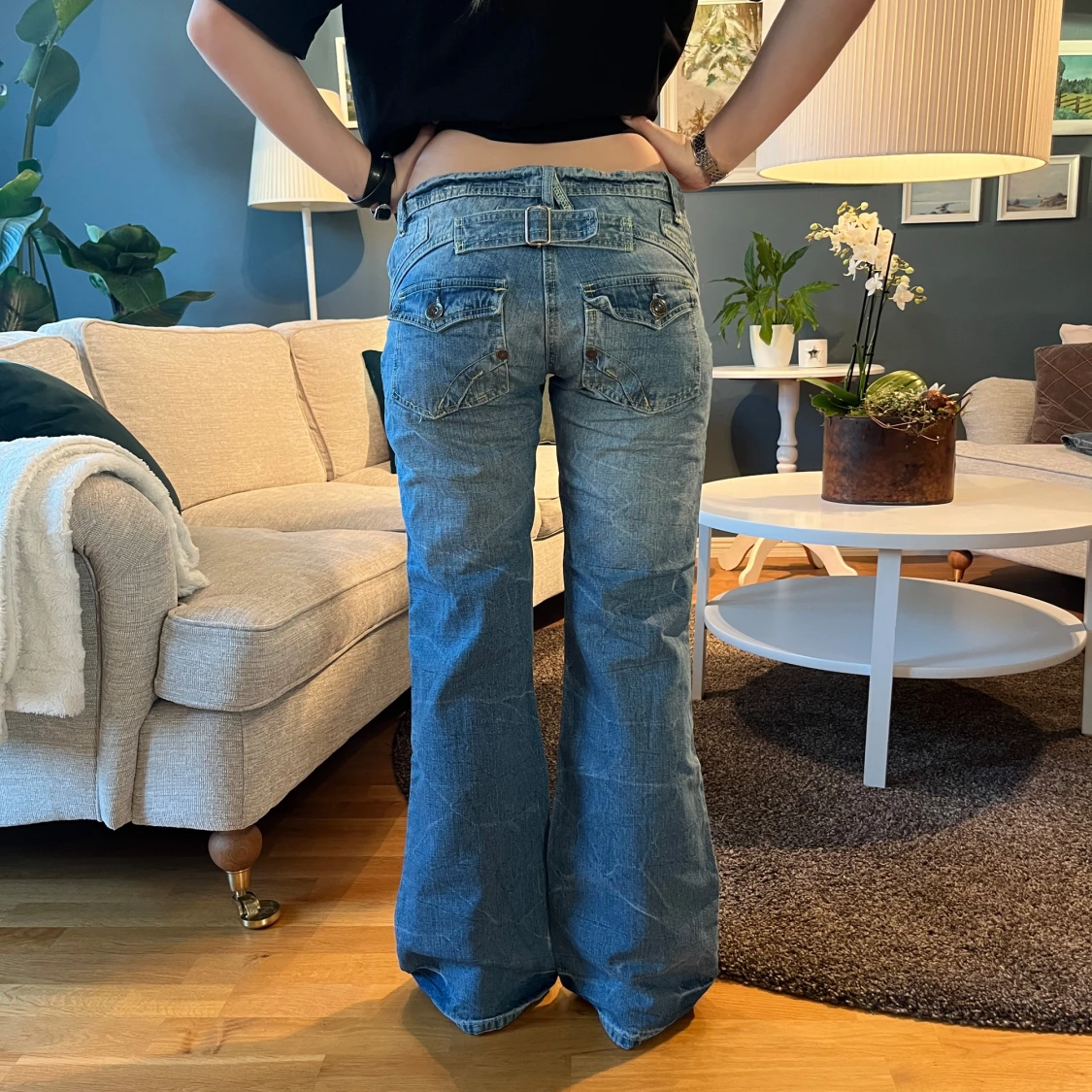 Lågmidjade jeans med detaljer och slitningar 💖står ingen storlek men skulle gissa på en S