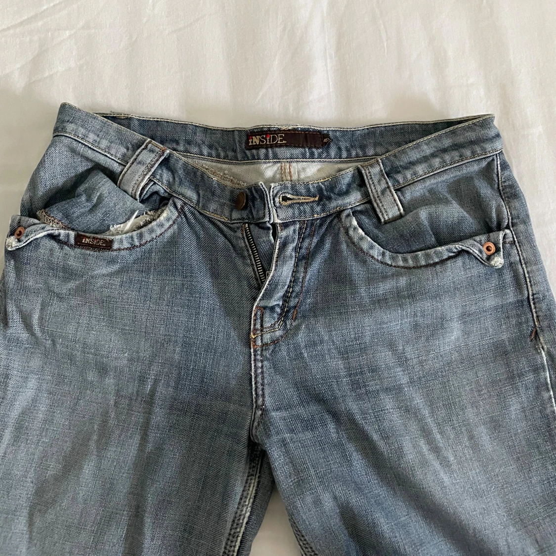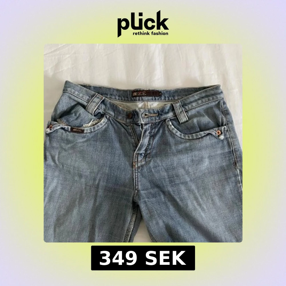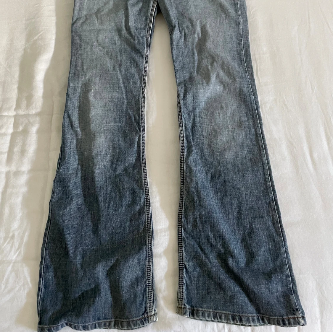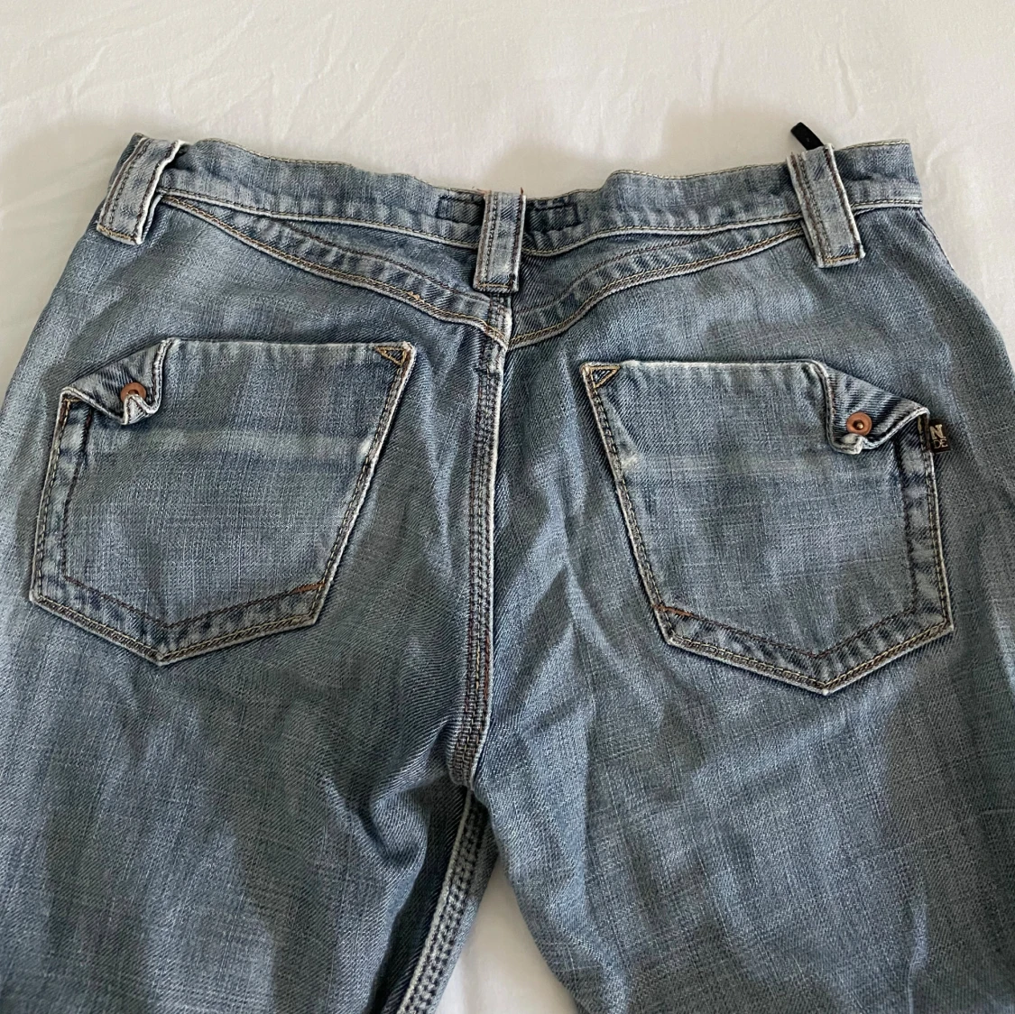 Ett par as snygga väldigt lågmidjade bootcut jeans i storlek 40. Tyvärr tycker jag om de jättemycket men de är för små för mig så kan inte använda de.