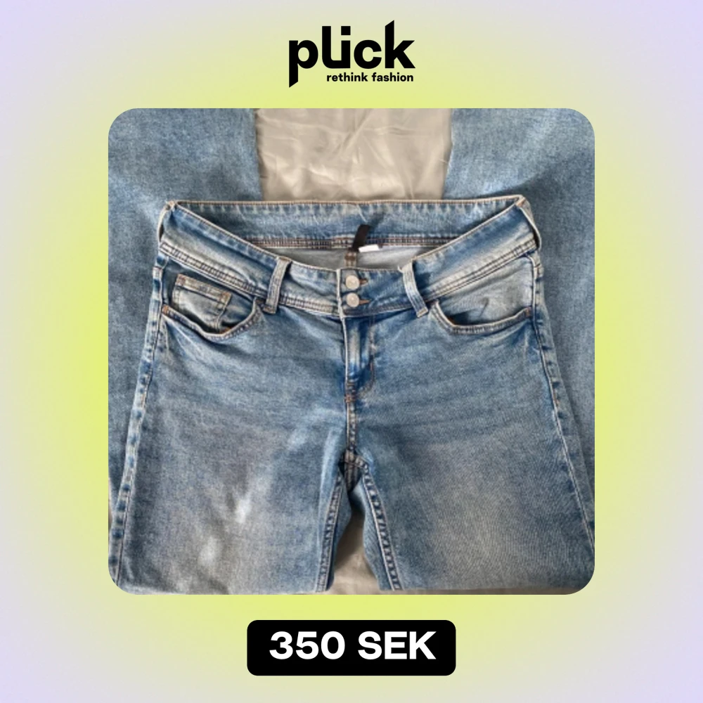 Blåa low waist flare jeans från h&m i storlekt 40 men passar mer som 38☺️ populära jeans som är slutsålda💗