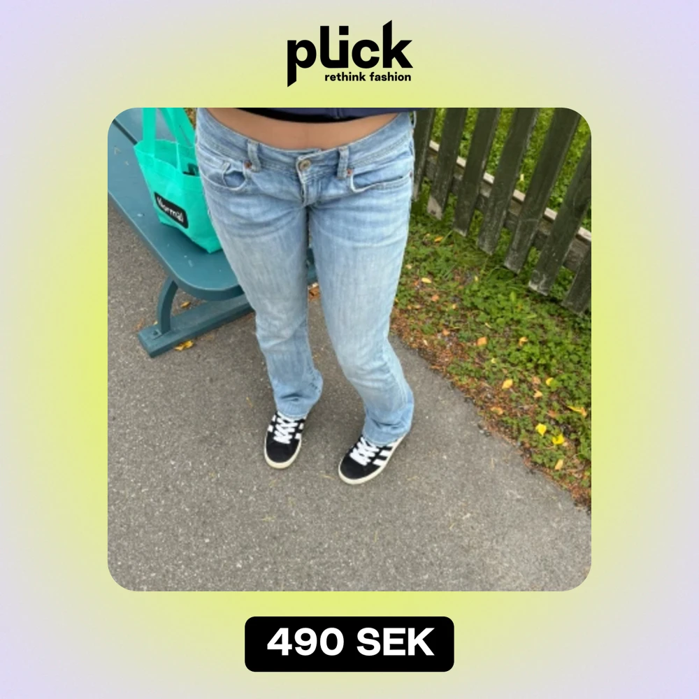 Trendiga vintage 2000s jeans som är köpta på en loppis i new York💕 märket är American Eagle men dom säljs inte längre. Kan tänka mig sänka priset 💘storkek står inte men hon på bilden brukar ha 32-34 på byxor