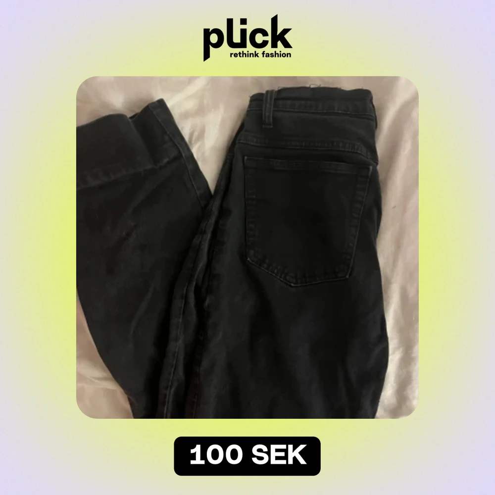 Svarta låga jeans som är raka i benen. Står att det är storlek L i byxorna. Men passar mig perfekt som är 168 cm och vanligtvis har 34/36 i byxor!