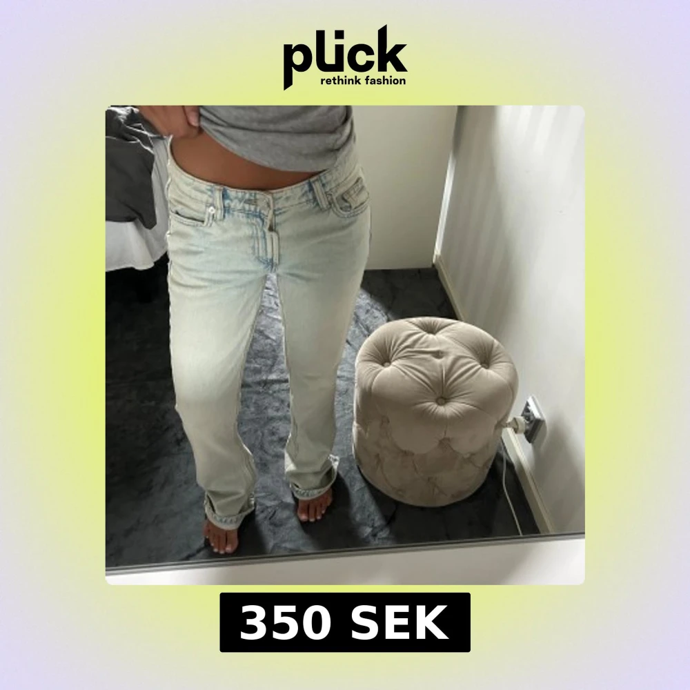 Säljer ett par ljusblå lågmidjade jeans med bootcut från Zara, använda en gång därav helt nya❤️
