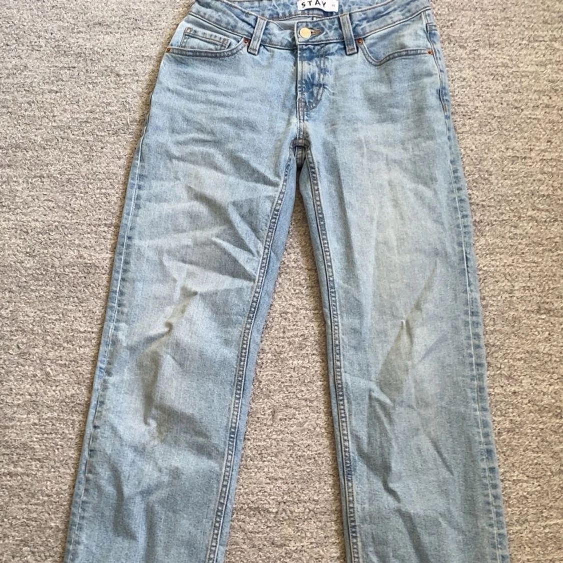 Lågmidjade raka jeans i storlek XS men passar även mig som i vanliga fall har S. Ändats använda några få gånger. Hör av dig vid frågor!