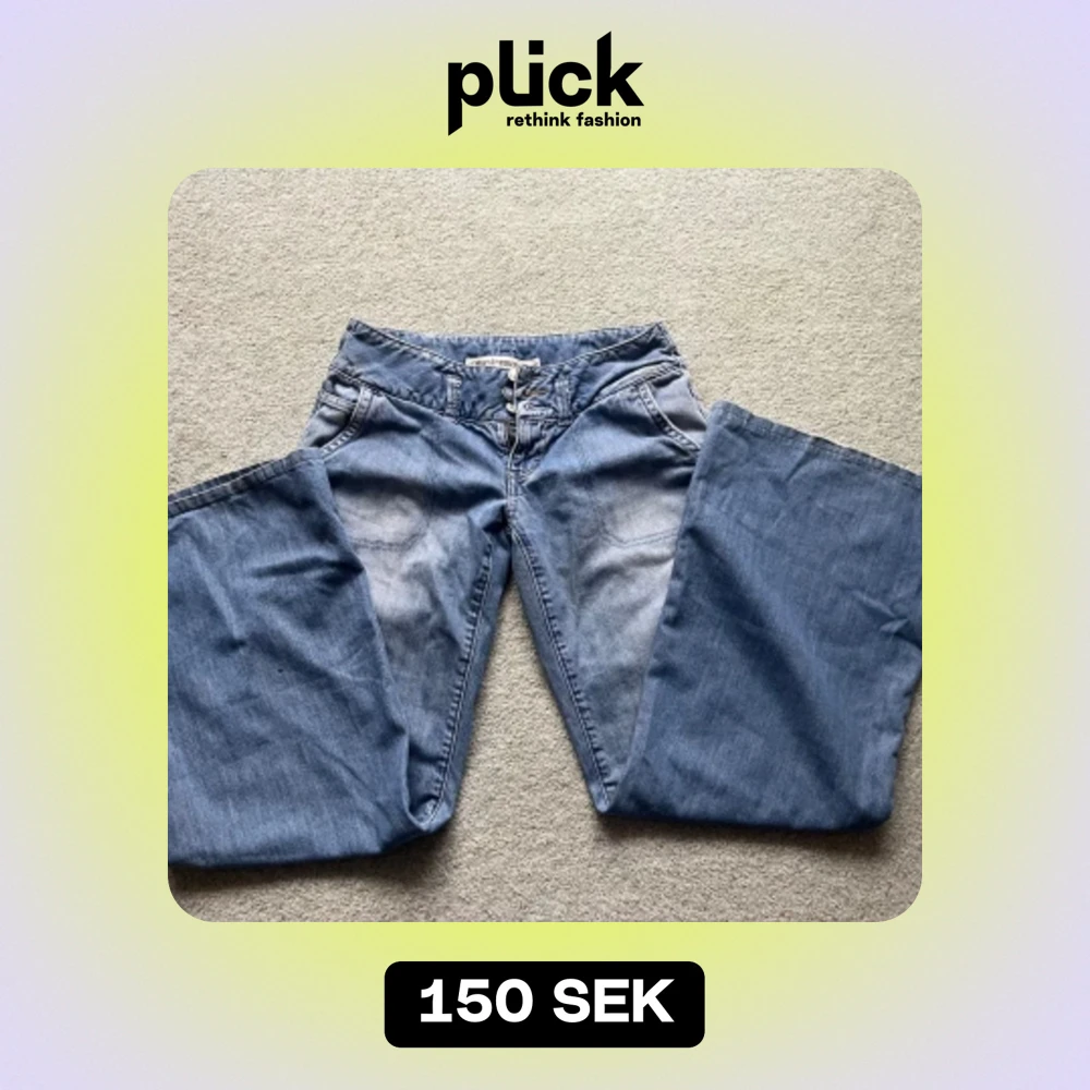 Lågmidjade jeans som tyvärr är för små för mig 💓mått: midja 82cm, innerben 78cm. Står att de är storlek 38 men jag skulle säga 34 eller 36.