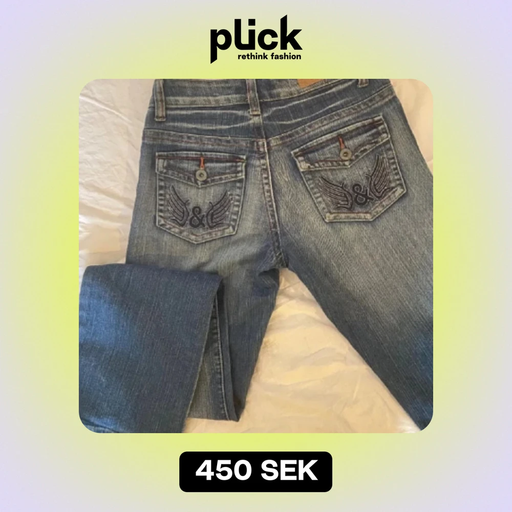 Skit snygga lågmidjade bootcut. Jätte coola mönster på bakfickan🤍 Säljer pga för små, bilder lånade av förra ägaren