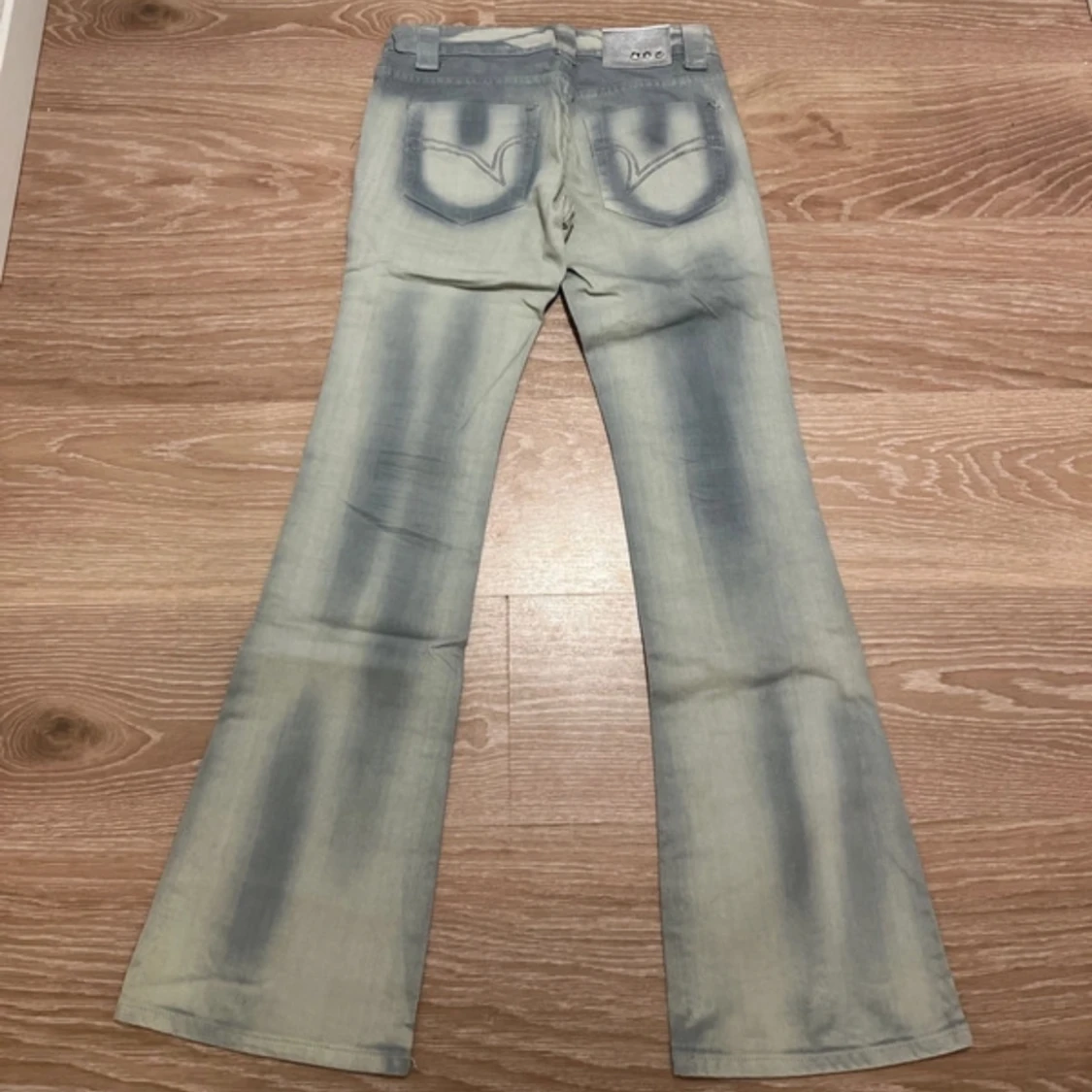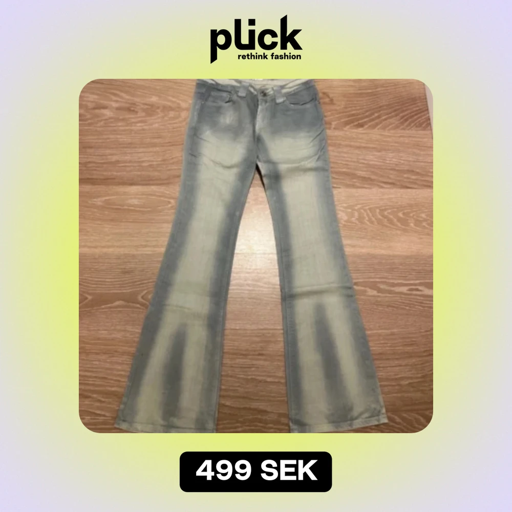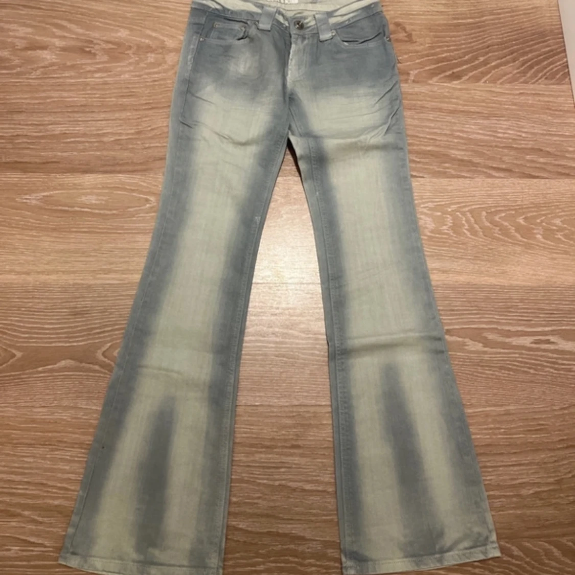 Ljusblå-grå utsvängda jeans med låg midja. I perfekt skick! 💕 Midjan är ca 2x39 cm Längd 102cm