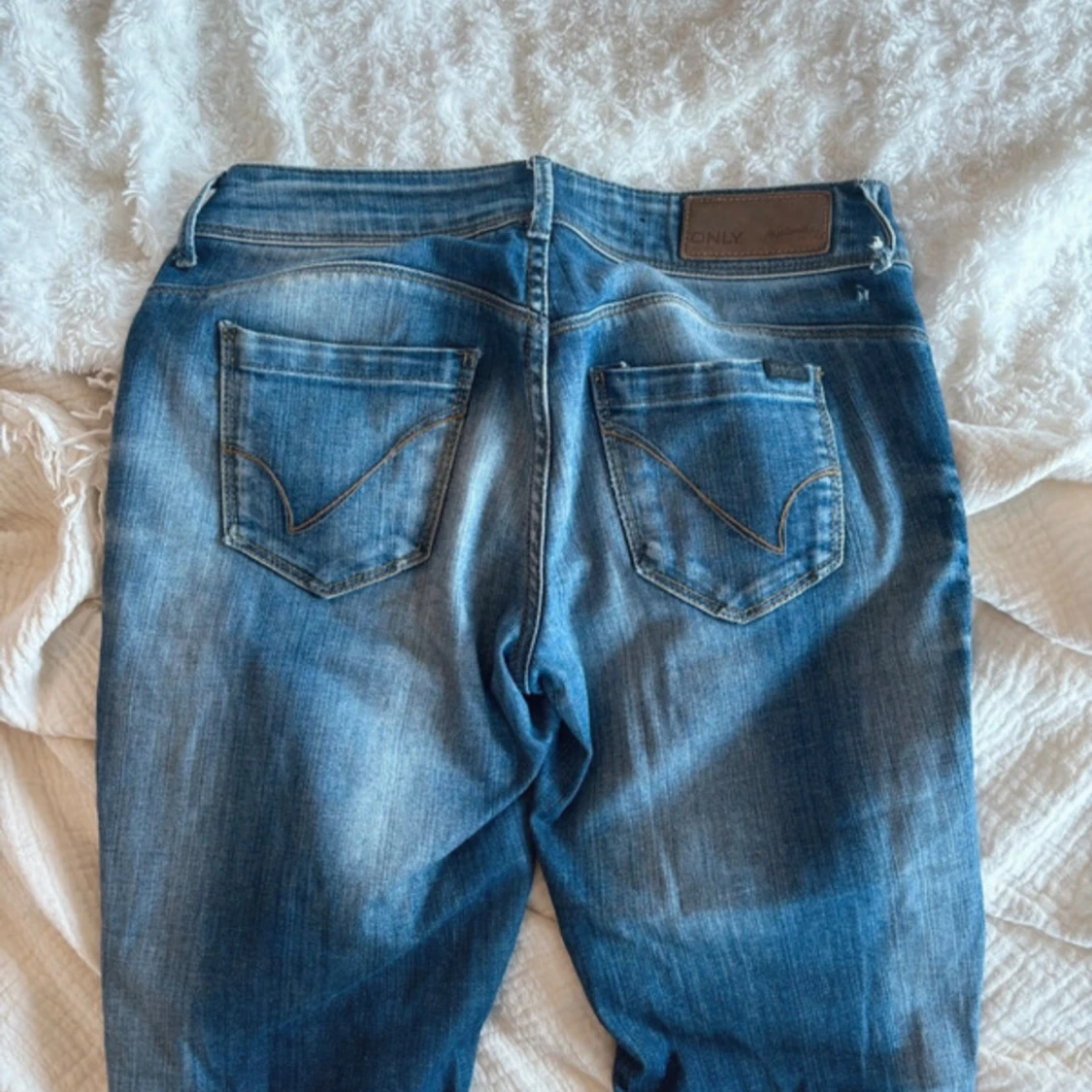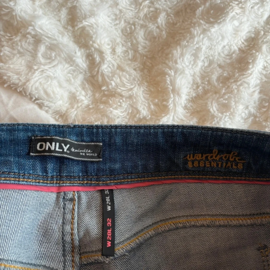 SUPER snygga lågmidjade jeans från ONLY som tyvärr inte passar. Storlek: W28 L32 Midjemått tvärsöver: ca 39cm och Innerbenslängd: ca 80cm. Skriv vid frågor🥰