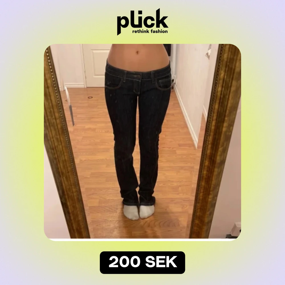Mörkblå lågmidjade jeans i storlek 36! (Personen på bilderna är 165 för referens)!💕