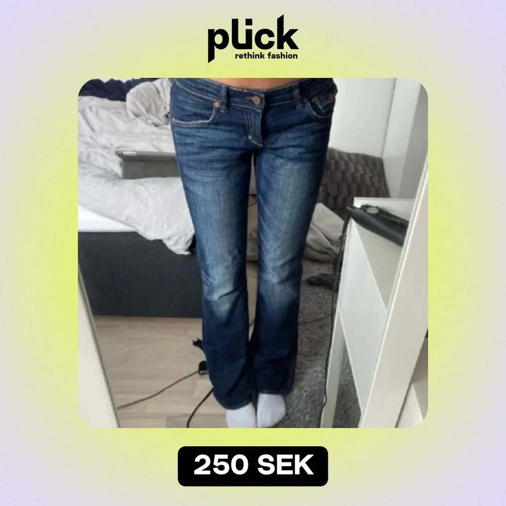 Super fina lågmidjade jeans , köpte second hand men tror de är från ltb, inte säker då kapp saknas. Passar bra på mig som är 169 cm lång och har 36/S. Mörkblåa