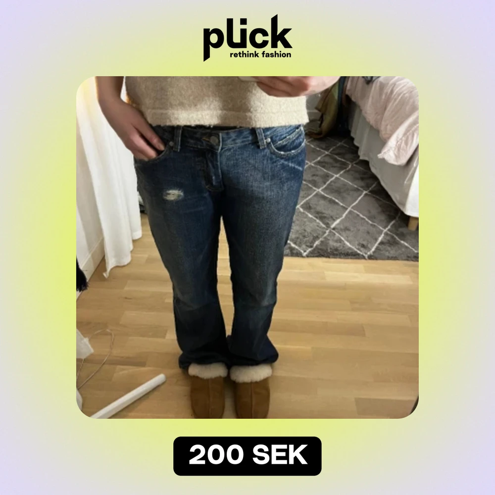 SKIT snygga lågmidjade jeans!! Köpte den secondhand men i fint skick förutom längst ner vid hälarna. Säljer då dom är lite stora men tar verkligen emot, jag brukar ha storlek 38 i jeans! Använd gärna köp nu❣️(kan gå ner i pris vid snabb affär)