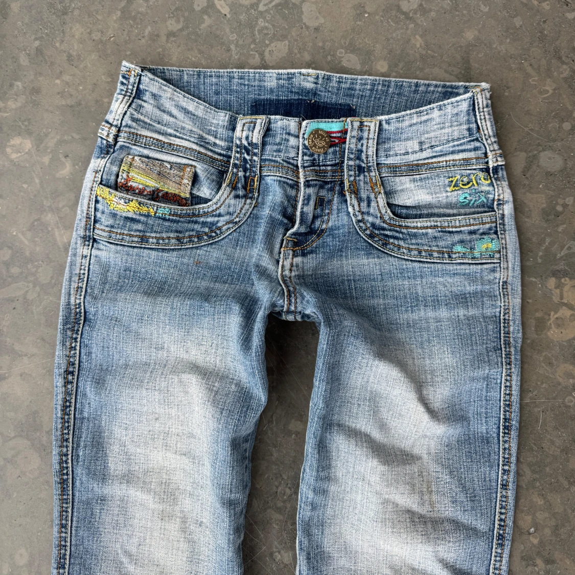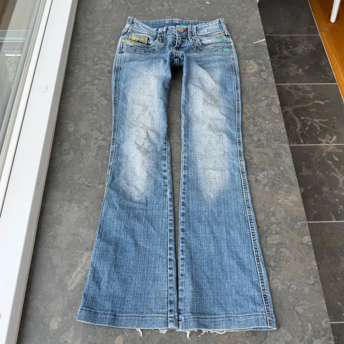 Så snygga jeans som tyvärr inte passar mig och har därför ingen bild på! Midjemått tvärsöver: 36cm Midjehöjd: 18cm Inerbens längd:78cm. Finns en jätte liten fläck på jeansen men som säkert går bort i tvätten och verkligen inte är något som syns, och de är även något nötta nertill 💕