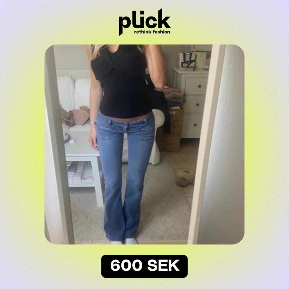 Säljer nu dessa otroligt snygga jeans, är 168 cm som referens! Står ingen storlek i jeansen men skulle tippa på 26 i midjan å 32 i längden