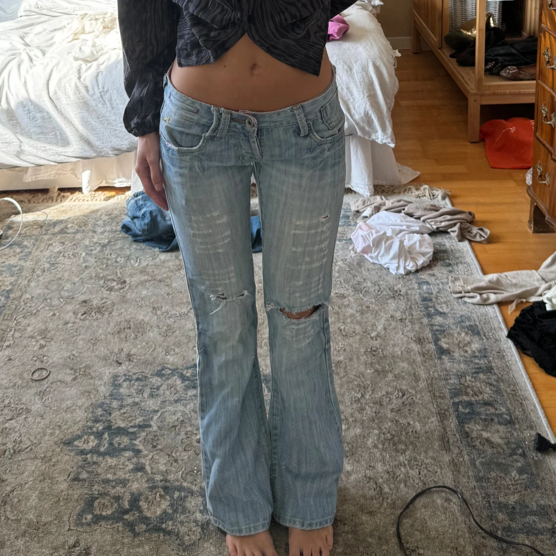 Perfekta lågmidjade ljusblå jeans! Midjemått cirka 38cm tvärs över