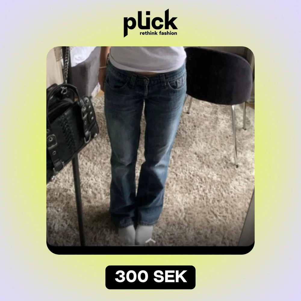 Säljer jättefina blåa lågmidjade jeans från märket americanos då de är för stora. Är ca 165 för referens Hör av dig vid frågor och intresse!❤️
