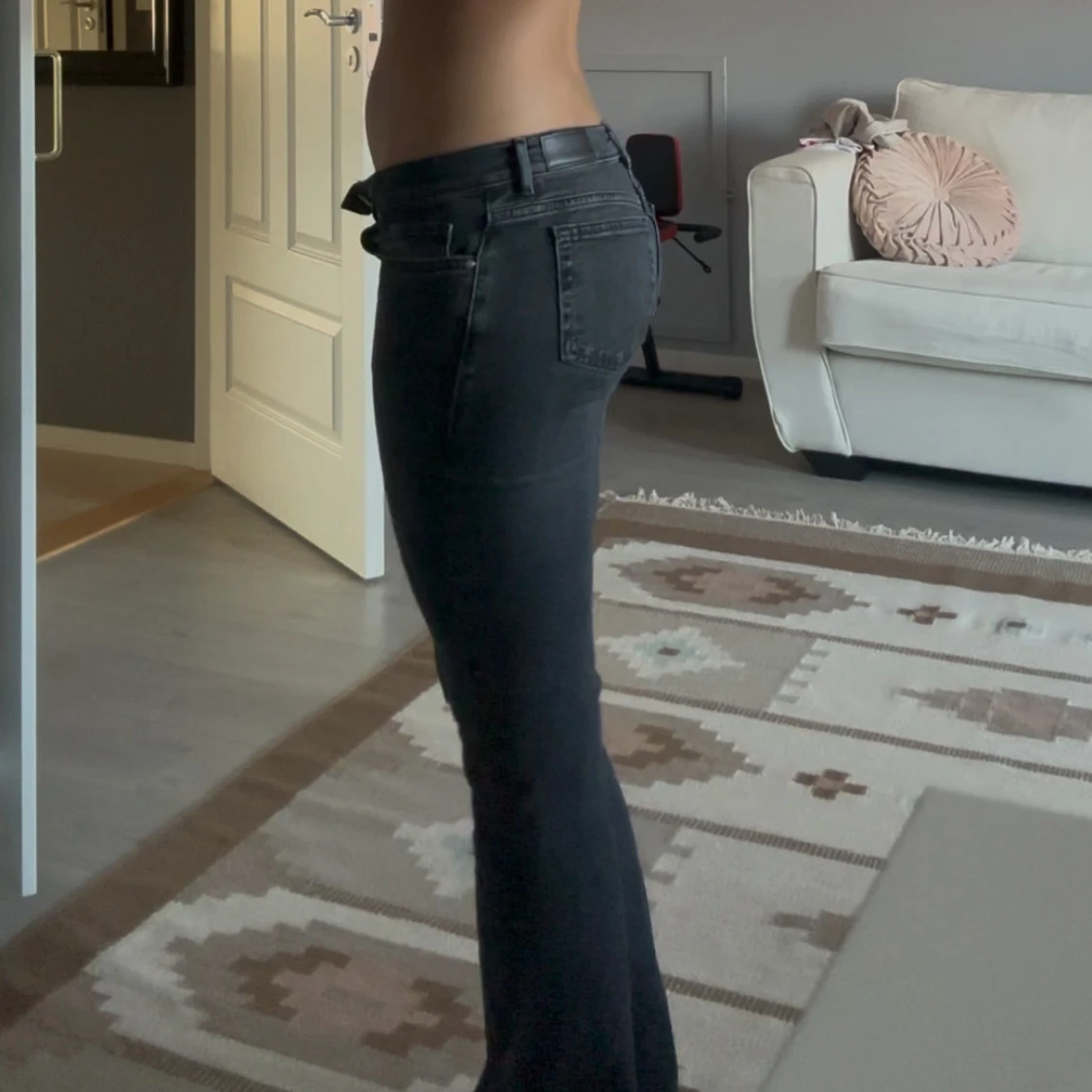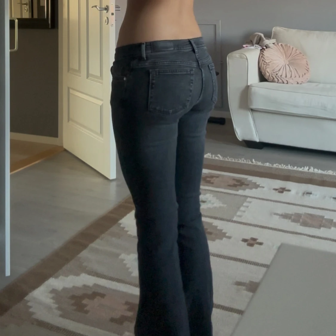 Säljer dessa snygga gråsvarta lågmidjade jeansen då de har blivit för små för mig. Har knappast använts och är i väldigt bra skick. Jag är 172 lång och de är pytte lite korta vid hålen för min stil så skulle säga att de skulle passat någon som är lite kortare❤️