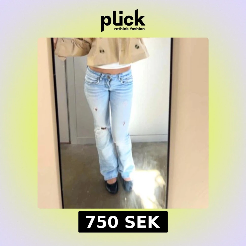 Säljer dessa assnygga lågmidjade jeans!💕låg midja och bootcut. Midja: 37cm, innerbenslängd:81 cm. Dock har de en liten defferens vid början av fickan då de sprack en liten liten bit där men jag sydde till de. Det är inget man lägger märke till!🥰säljer de då dem är lite lite för små för mig. Köpte de för 800kr