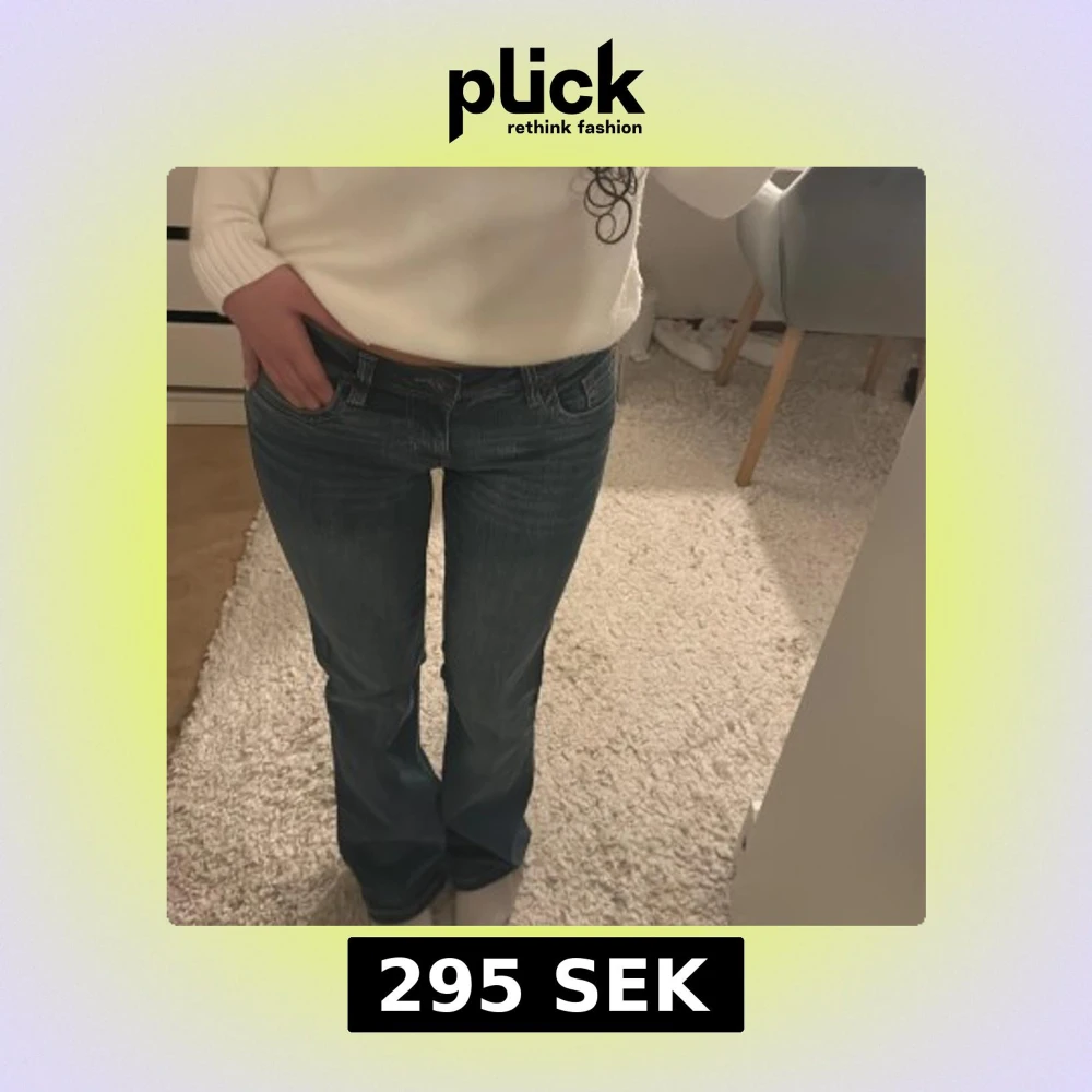 Lågmidjade jeans med knappar på bakfickorna. Använda 1 gång så nyskick!