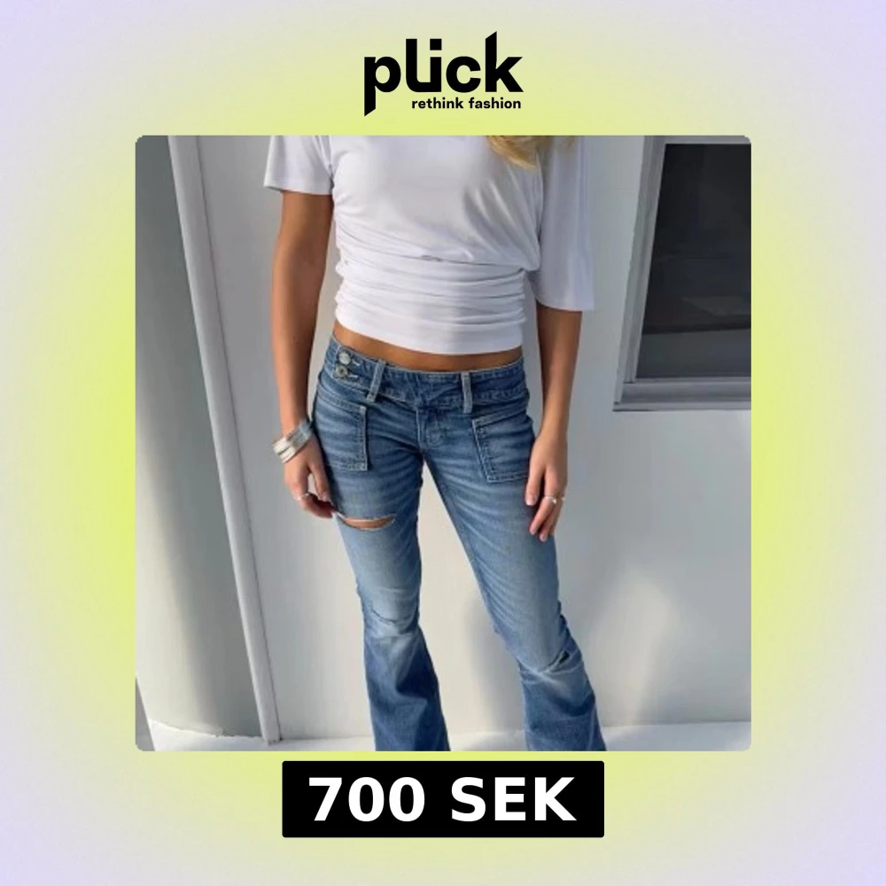 Jag säljer dom här skitsnygga lågmidjade jeansen från Gina Tricot 14+! 💞 De är helt oanvända och har lappen kvar, de är i storlek S. ❗️Inte mina bilder ❗️