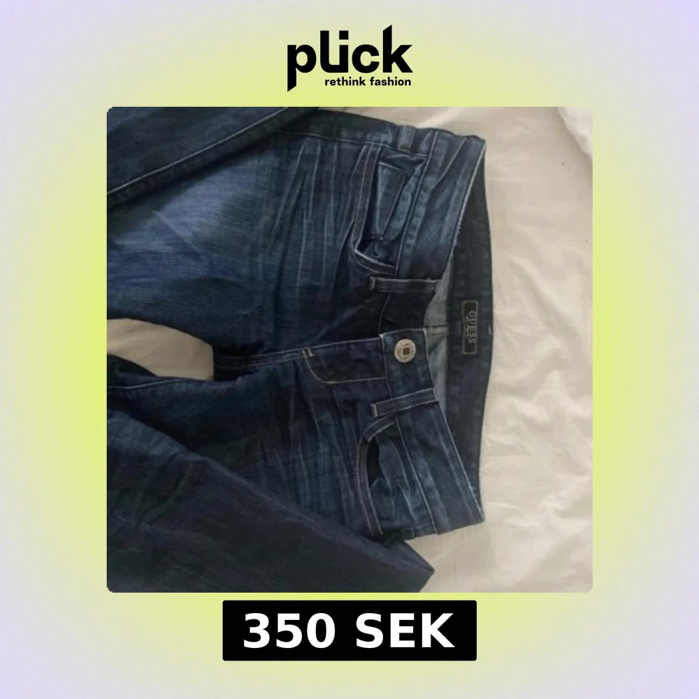 Snygga lågmidjade utsvängda mörkblåa jeans från guess. Skulle säga storlek xs-! Köpta för 500 då jag säljer för 350! De är vinted så går ej att köpa någonstans