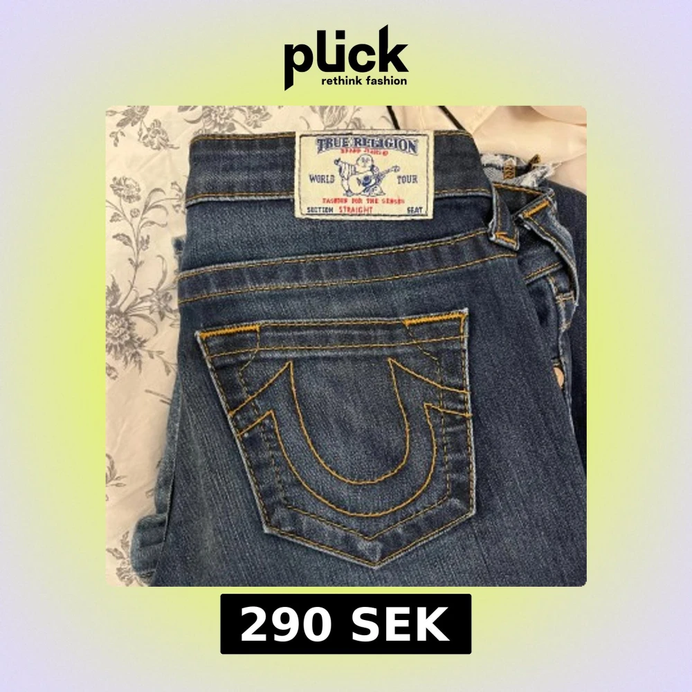 Snygga blå jeans från True Religion Jeansen har en straight passform och låg midja och är köpta vintage i Spanien. De är lite långa på mig som är 168 cm lång W27 💕