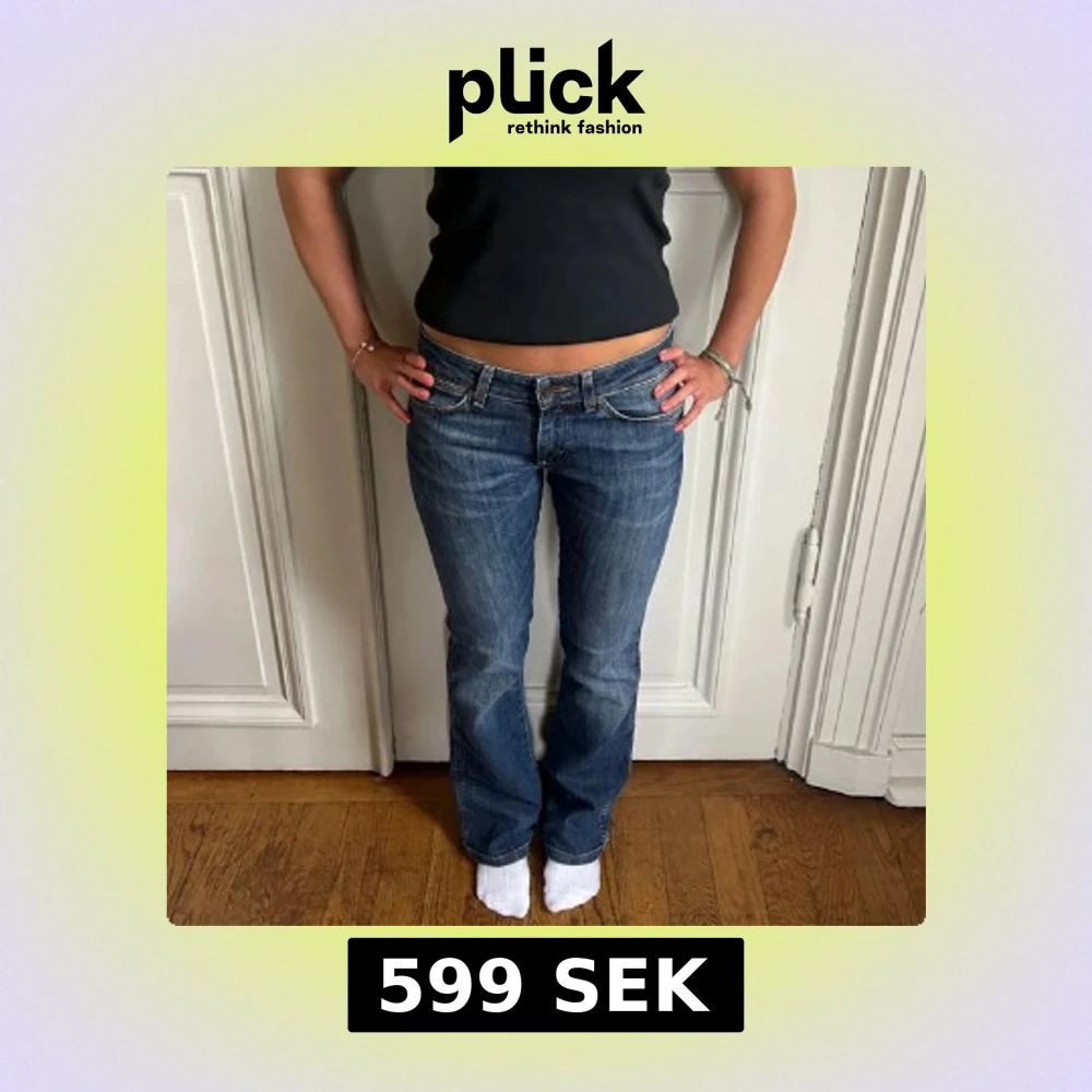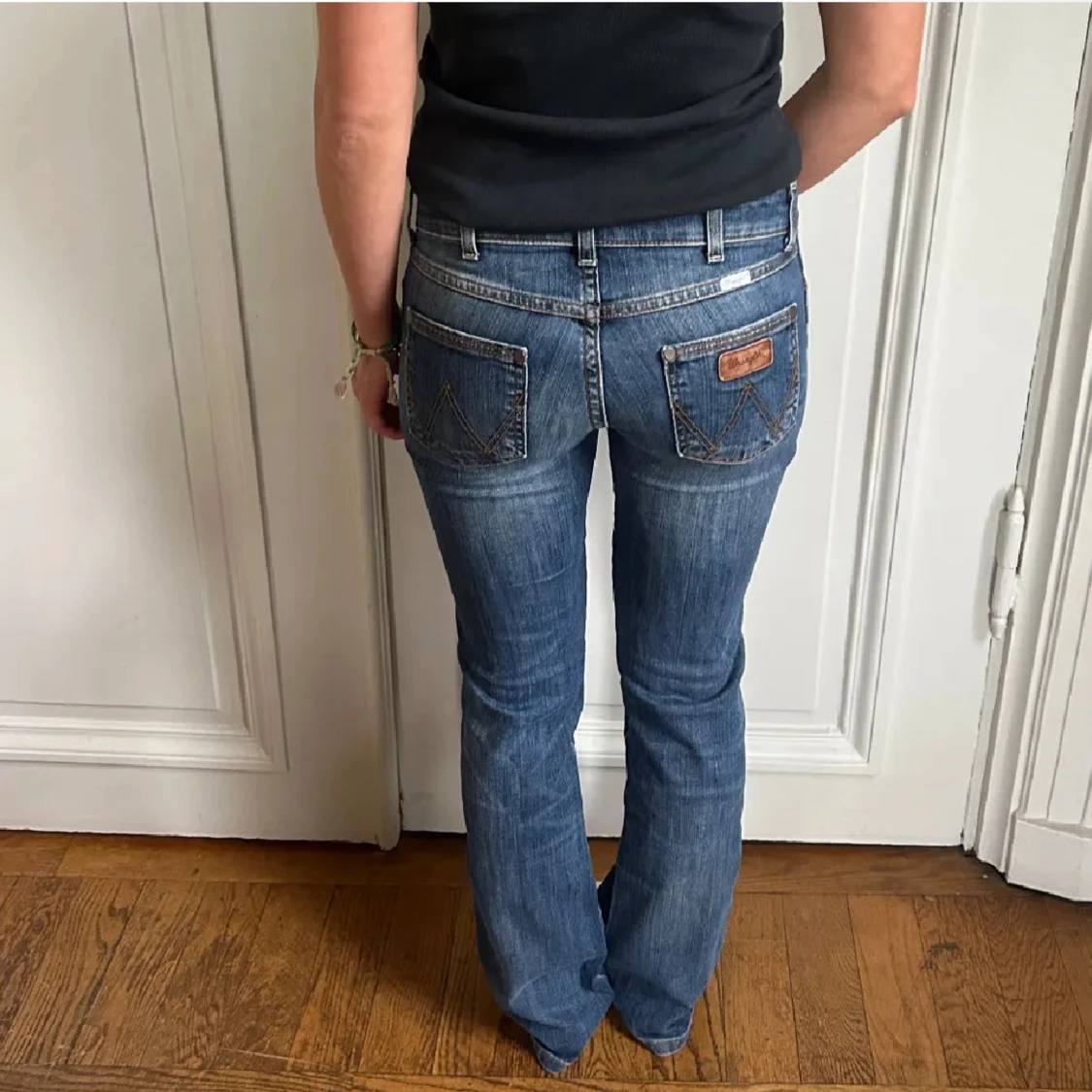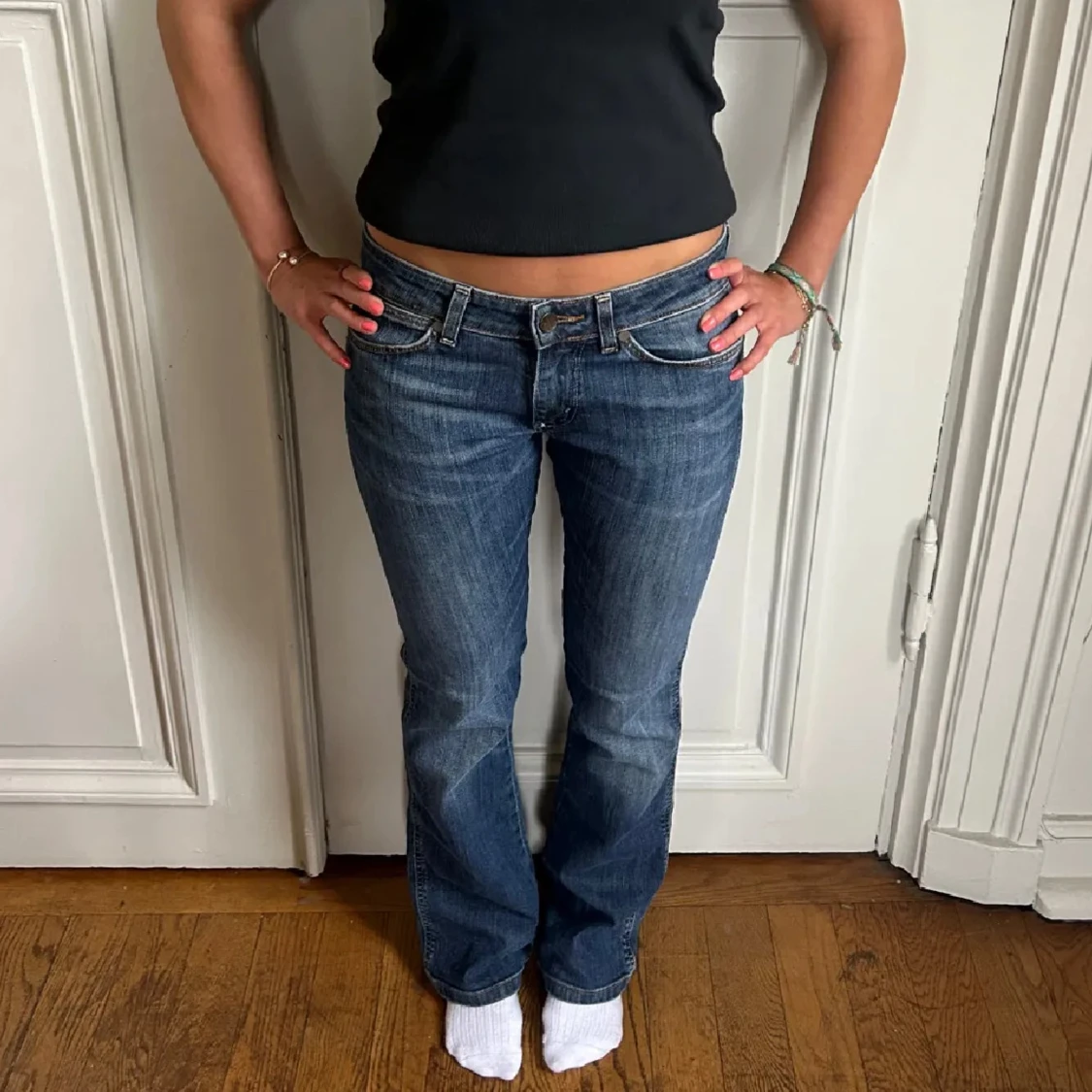 Snygga blå jeans med bootcut och låg midja. Jeansen har klassiska fem fickor, markerade sömmar och coola detaljer på bakfickorna. Perfekta för dig som gillar en avslappnad men ändå trendig look.