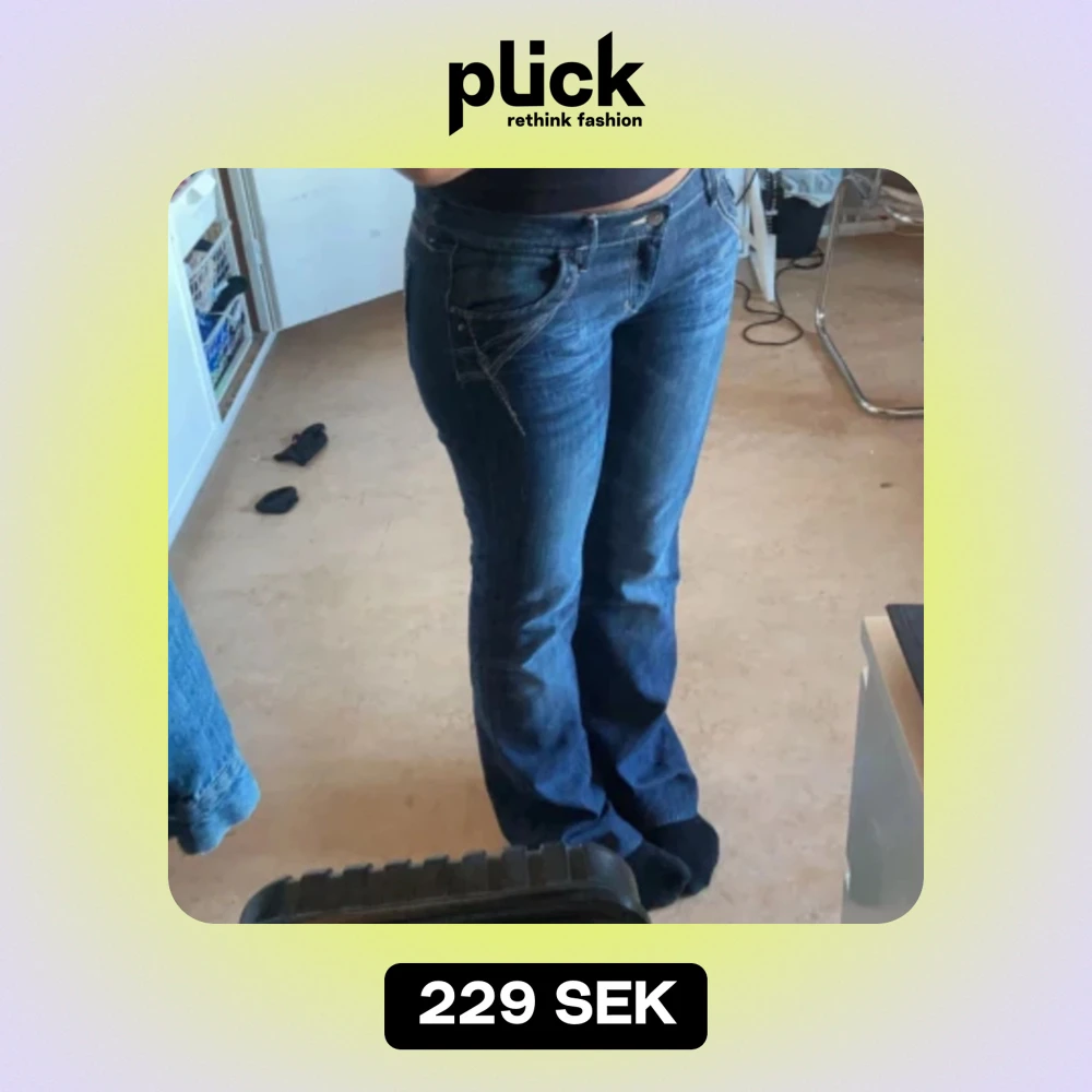 Lågmidjade jeans med söta detaljer på, köpta begagnat från hm. Jätte fina men kommer tyvärr inte till användning. Hör av dig om du vill ha mått!💕