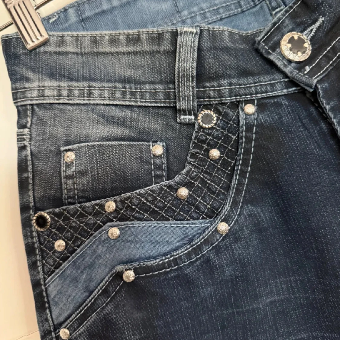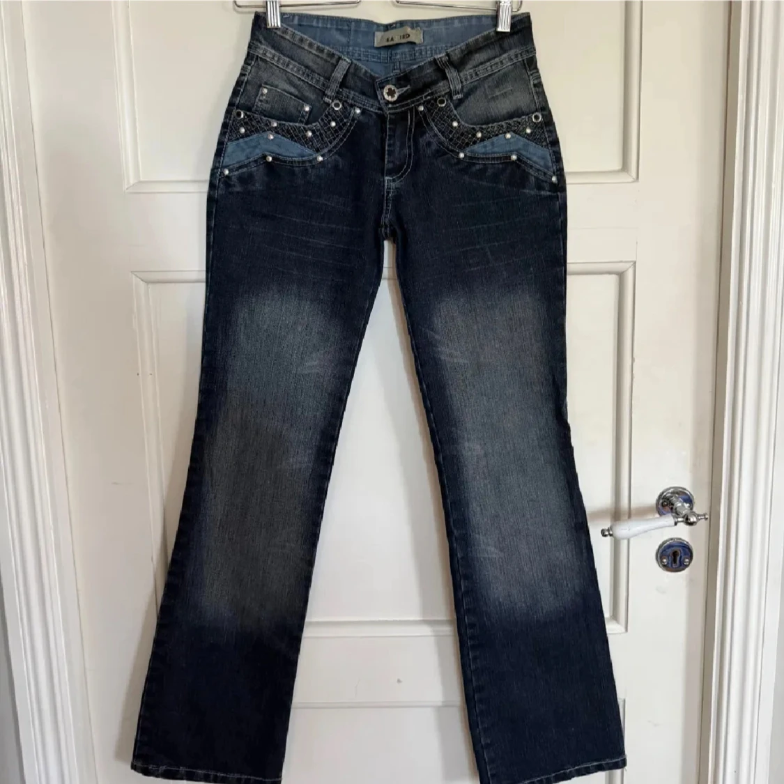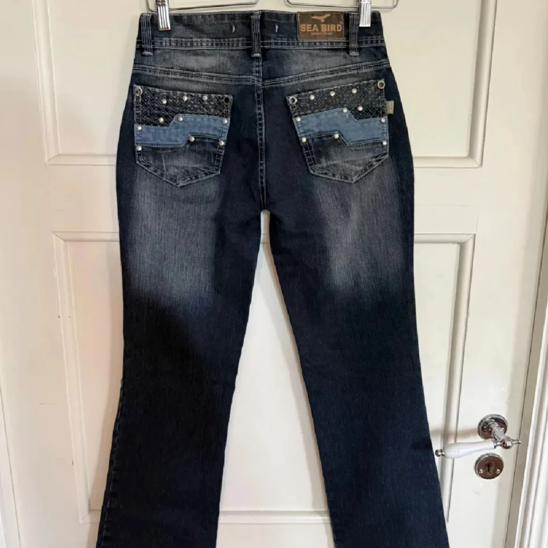 Skitsnygga lågmidjade jeans met detaljer på fickorna. Säljer för att de är för små för mig. Midjemått: 36-37 cm. Innerbenslängd: 82 cm. Det står att det är storlek S men dem är små i storleken så passar en XS bättre. Hör av dig om du har frågor😊