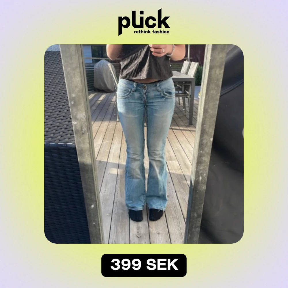 Här är ett par jätte fina lågmidjade bootcut jeans från only i storlek xs/s som inte längre kommer till användning. Innerbens längden är 85cm och midjemåttet rakt över från kant till kant är 37cm, skriv om ni har fler frågor💕