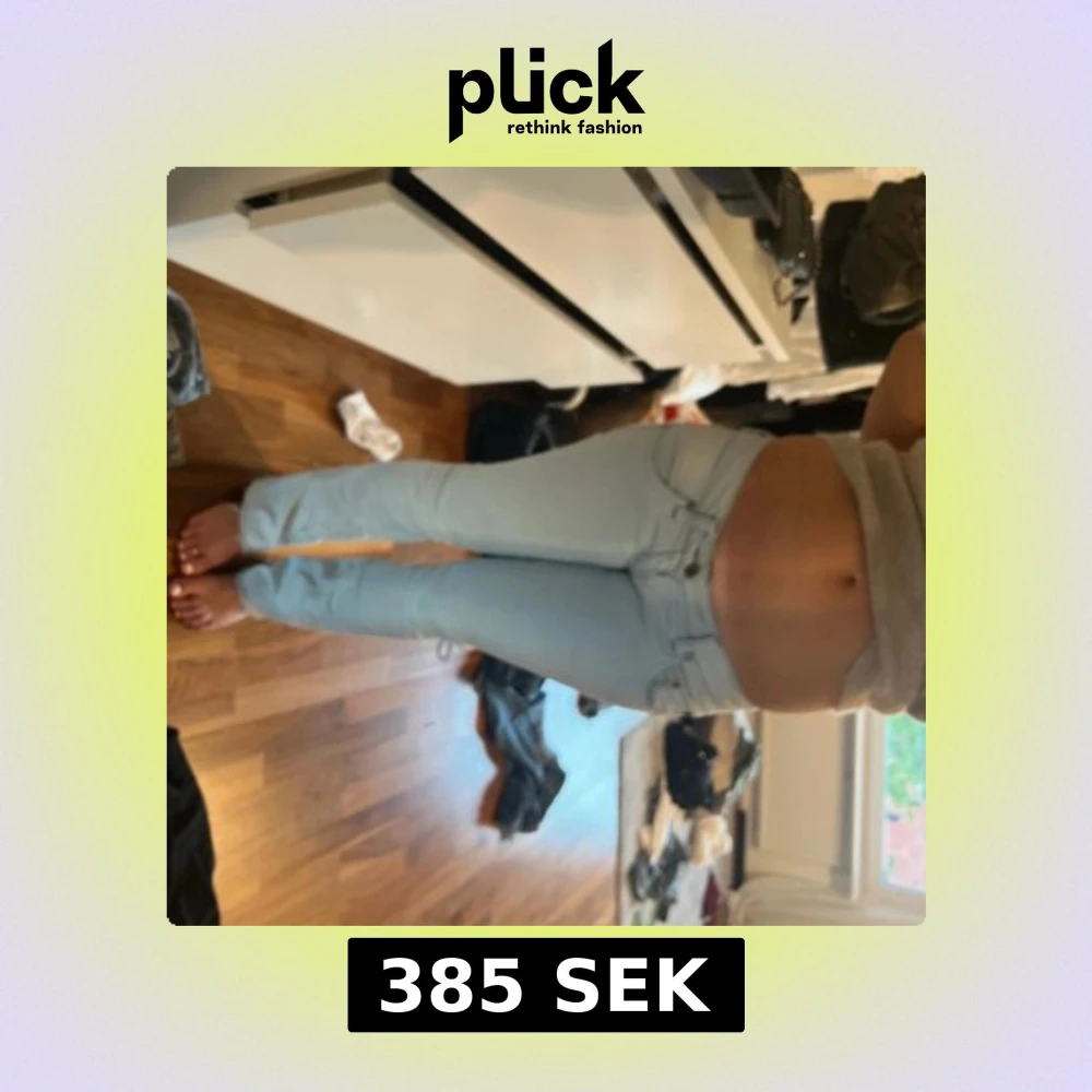 Lågmidjade jeans, midjemått är 37 cm rakt över och som passar mig som är 157. Finns en oroande fläck men som man inte direkt tänker på.