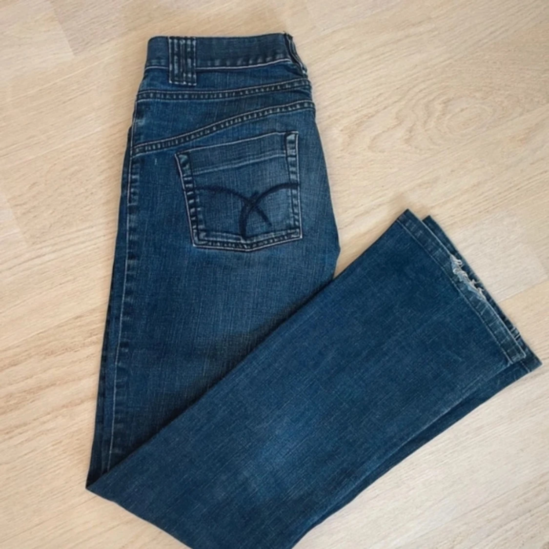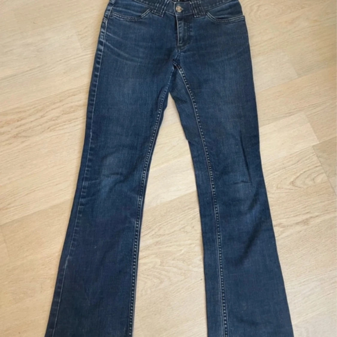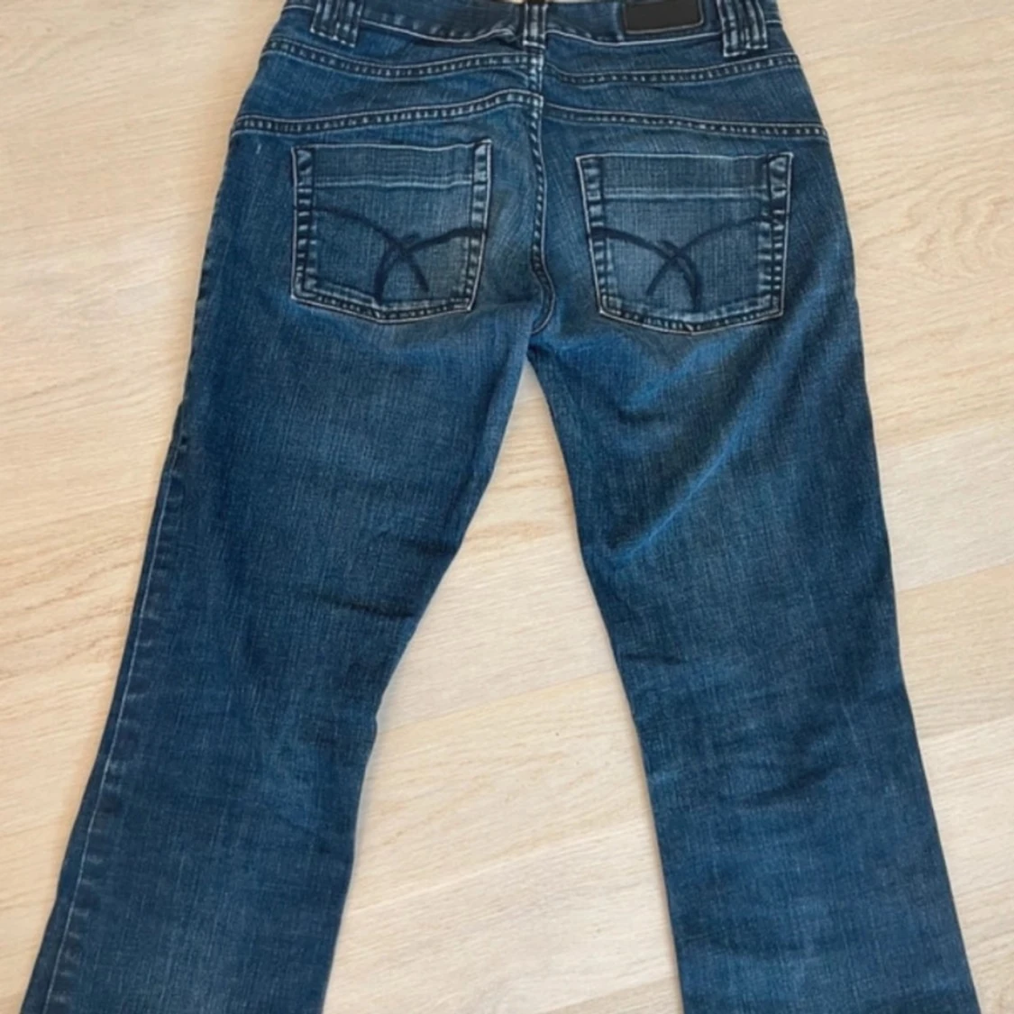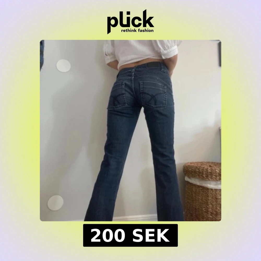 Säljer dessa snygga lågmidjade jeans. Midjemåttet med extraknappen är 35-36(mätt rakt över), midjemåttet med orginalknapp är 37-38 cm (mätt rakt över) Inerbenslängd: 78cm Hör av er vid frågor eller annat 🥰