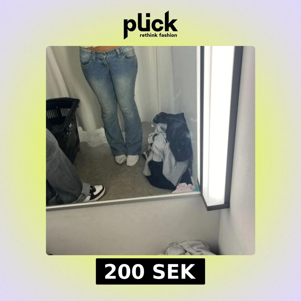 Säljer ett par blå lågmidjade jeans med bootcut passform och ljus tvätt. De är från brandy Melville och strl s, säljer då de är för små