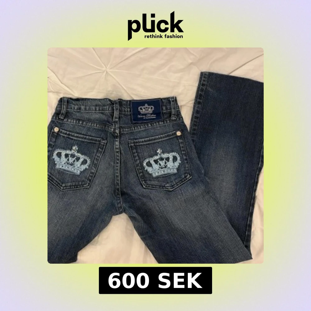 Lågmidjade jeans från Victoria Beckham med kronor på bakfickorna.