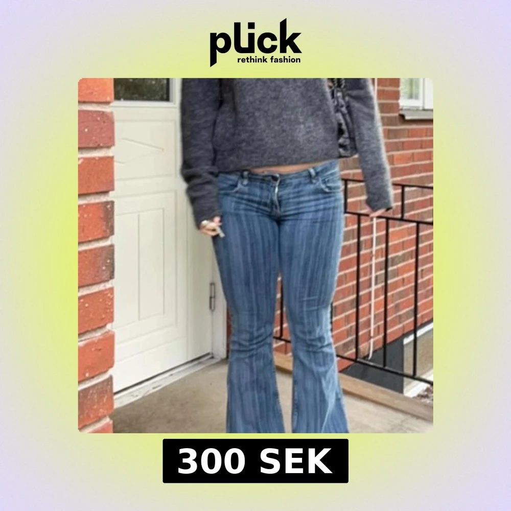 Snygga blå bootcut jeans med en klassisk femficksdesign. De har en lågmidjad passform och är perfekta för en avslappnad stil. Jeansen har en dragkedja och knapp framtill. Har sprätt upp de längst ner så de passar någon som är runt 165-175, kom privat för frågor❤️