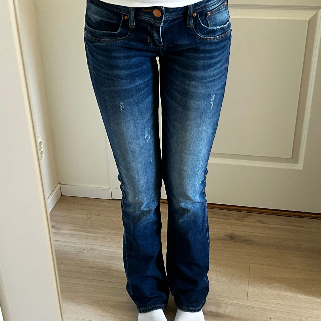 Lågmidjade bootcut/flare-jeans i nyskick från LTB i modellen valerie. Storleken är W28/L36. Midjemåttet är 83 cm och innerbenet 90 cm. De två sista bilderna är lånade. Hör av dig med frågor! <3 (Nypris: ca 1000 kr)