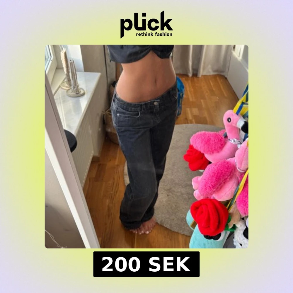 Säljer dessa låg midja det lite bagg i jeans från zara. Perfekta till sommaren och sommarkvällar. Inga defekter🥰Lite urtvättad svart i färg!